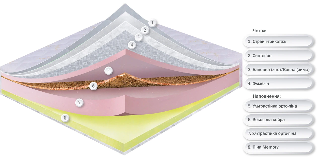 - Сторона матраца 2 середньої жорсткості