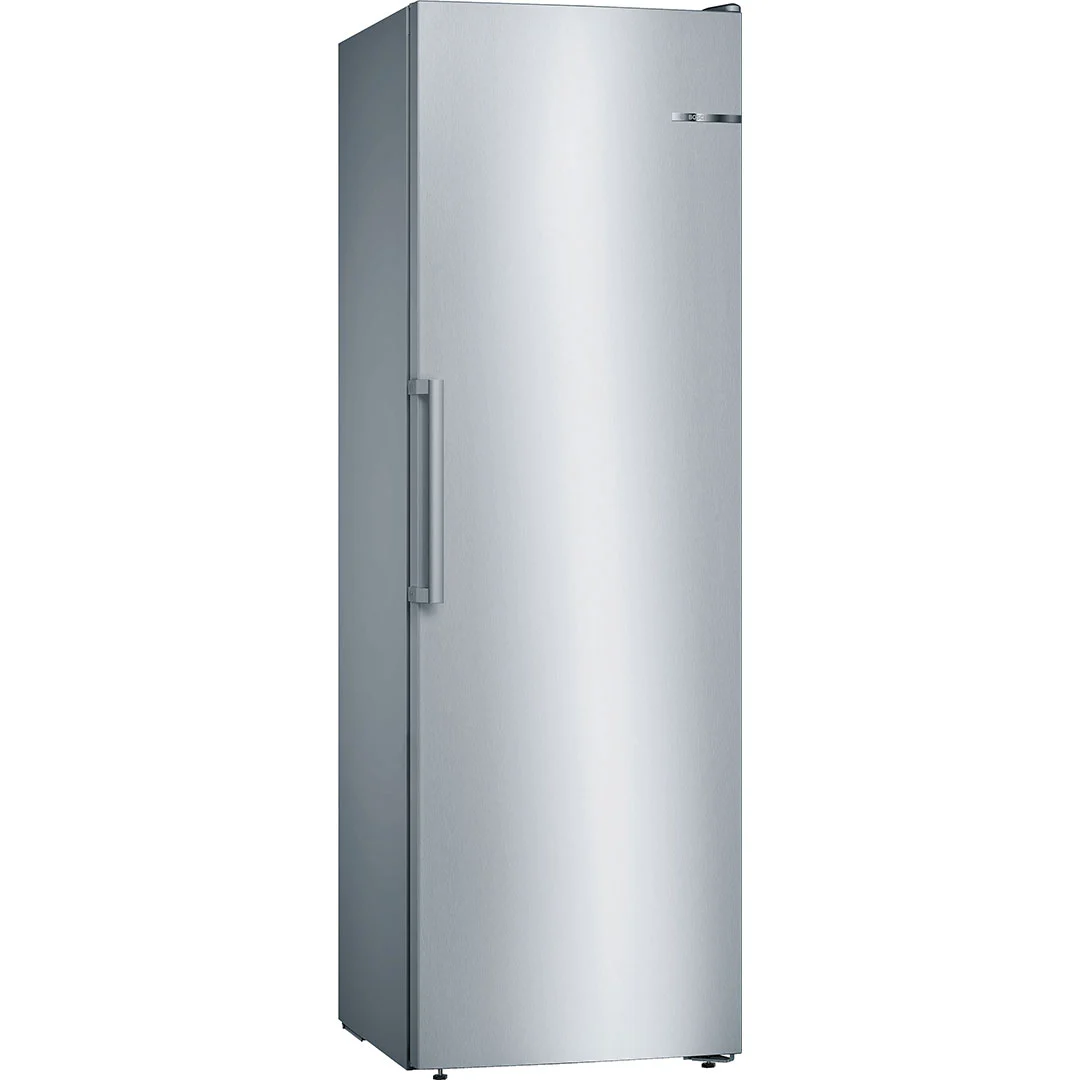 Bosch GSN36VL30U — це вертикальна морозильна камера з повною системою No Frost, енергоефективністю класу A++ та стильним корпусом із нержавіючої сталі. Завдяки корисному об’єму 242 літри модель стане надійним вибором для сімейного користування. Вона забезпечує швидке та рівномірне заморожування, не потребує розморожування і має продумане внутрішнє компонування із прозорими ящиками VarioZone.