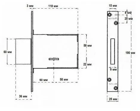 - Габарити лицьової частини замка 25х190 мм