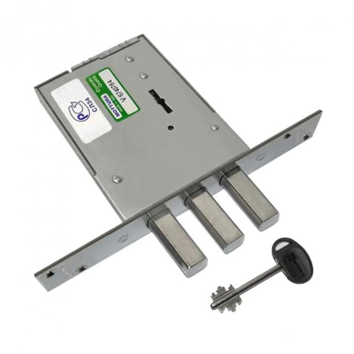 MOTTURA 408016000056CR призначений для встановлення як додатковий замок у металеві, сталеві або броньовані двері. Його застосовують для підвищення рівня безпеки в житлових і комерційних приміщеннях. Три масивні ригелі надають міцне блокування дверного полотна, а чотири оберти ключа забезпечують точне й щільне замикання без люфтів. Замок сумісний з основними замковими системами MOTTURA.