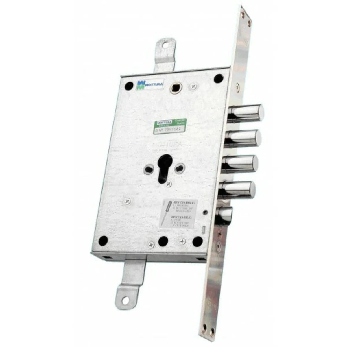 MOTTURA 85971S28T — це 4-ригельний замок із захистом під циліндр, тягами та системою антибампінг. Надійність, міцність і технологічна досконалість роблять його оптимальним вибором для металевих і броньованих дверей, де безпека стоїть на першому місці.