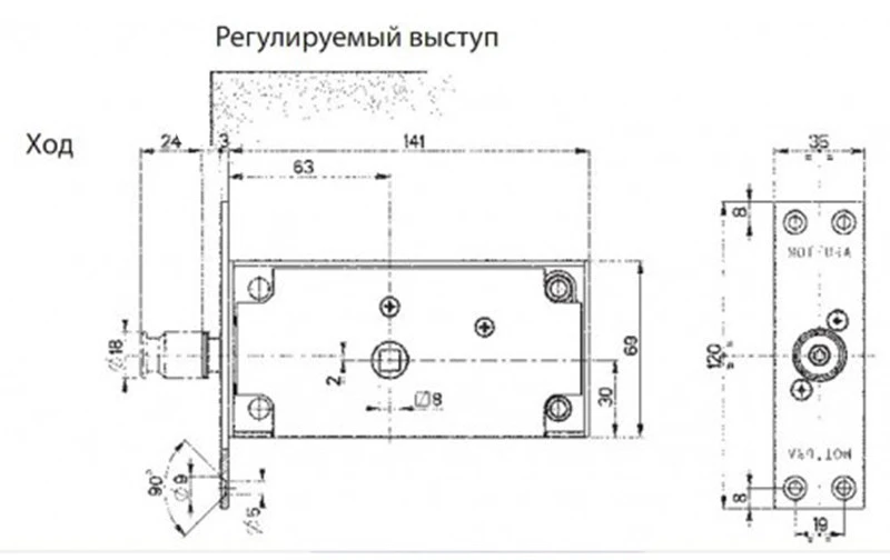 - Габарити лицьової частини замка 35 мм