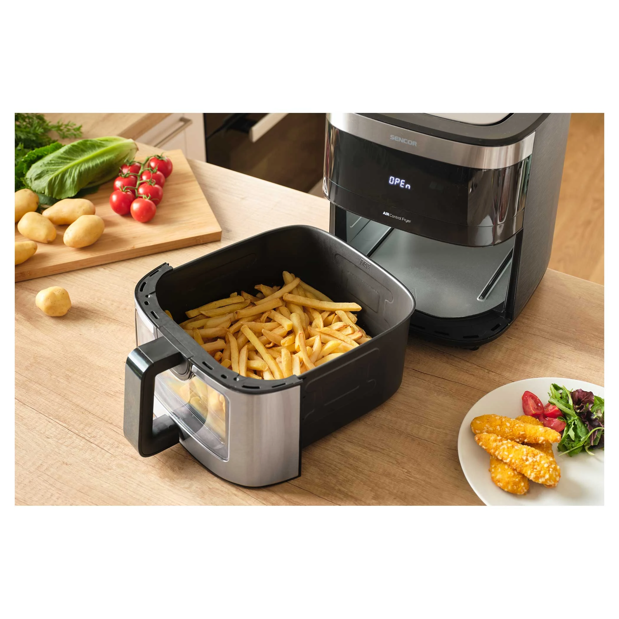 Мультипіч Sencor Vita SFR9000SS – потужна фритюрниця з обʼємом 9 літрів, що дозволяє готувати великі порції для всієї родини. Потужність 1700 Вт забезпечує швидке та рівномірне приготування без зайвого жиру. Оснащена LED-дисплеєм, 7 автоматичними програмами, таймером, регулюванням температури, функцією «Струшування» та відкладеним стартом. Має підсвічене віконце та антипригарну решітку для легкого очищення.