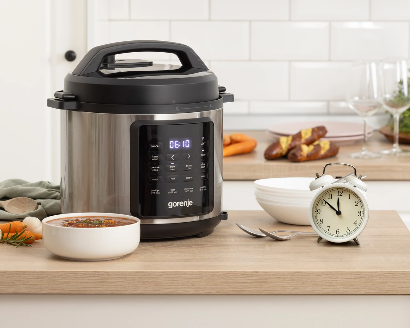 Мультиварка-скороварка Gorenje потужністю 1000 Вт поєднує функції мультиварки та скороварки для швидкого й зручного приготування страв. Пристрій має 8 програм, функцію відкладеного старту, налаштування часу та підтримання тепла. Завдяки знімній кришці та паровій корзині користування стає ще простішим. Сучасний дизайн із пластиково-металевим корпусом гармонійно впишеться на будь-якій кухні.