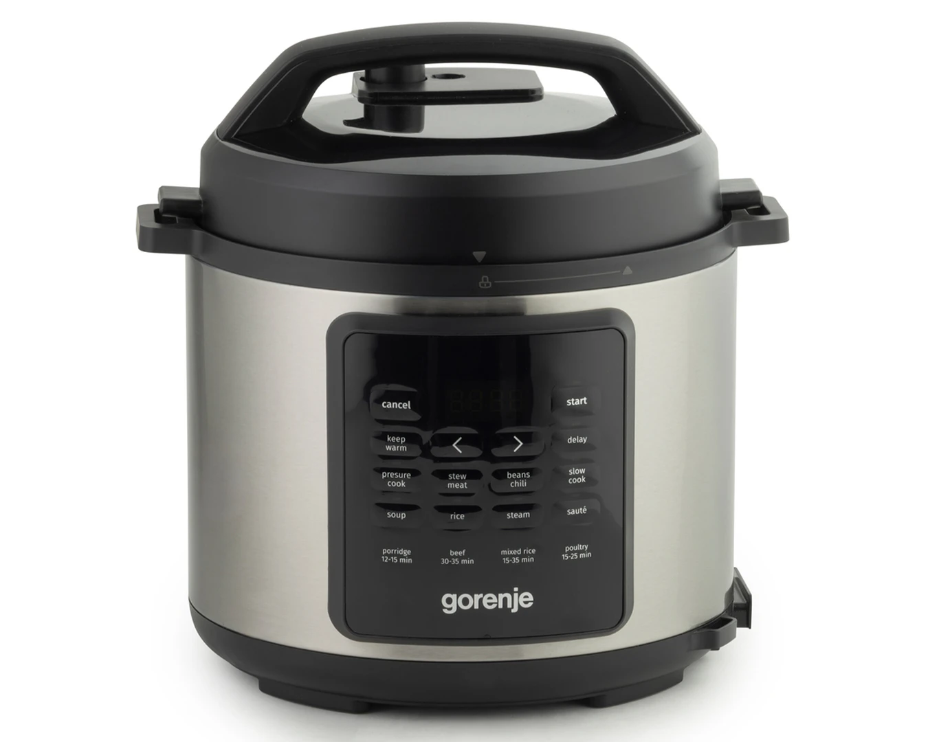 Мультиварка-скороварка Gorenje, 1000Вт, чаша-6л, електронне керув., 8 програм, метал/пластик, чорний