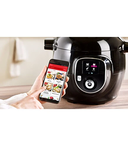 Cook4me + Connect містить 150 запрограмованих рецептів, які тепер ви можете безкоштовно поповнювати новими рецептами завдяки додатку "My Cook4me". Ця програма синхронізується з вашим смартфоном через Bluetooth і забезпечує доступ до всесвіту рецептів Cook4me: сотні рецептів, розроблених нашими кухарями.