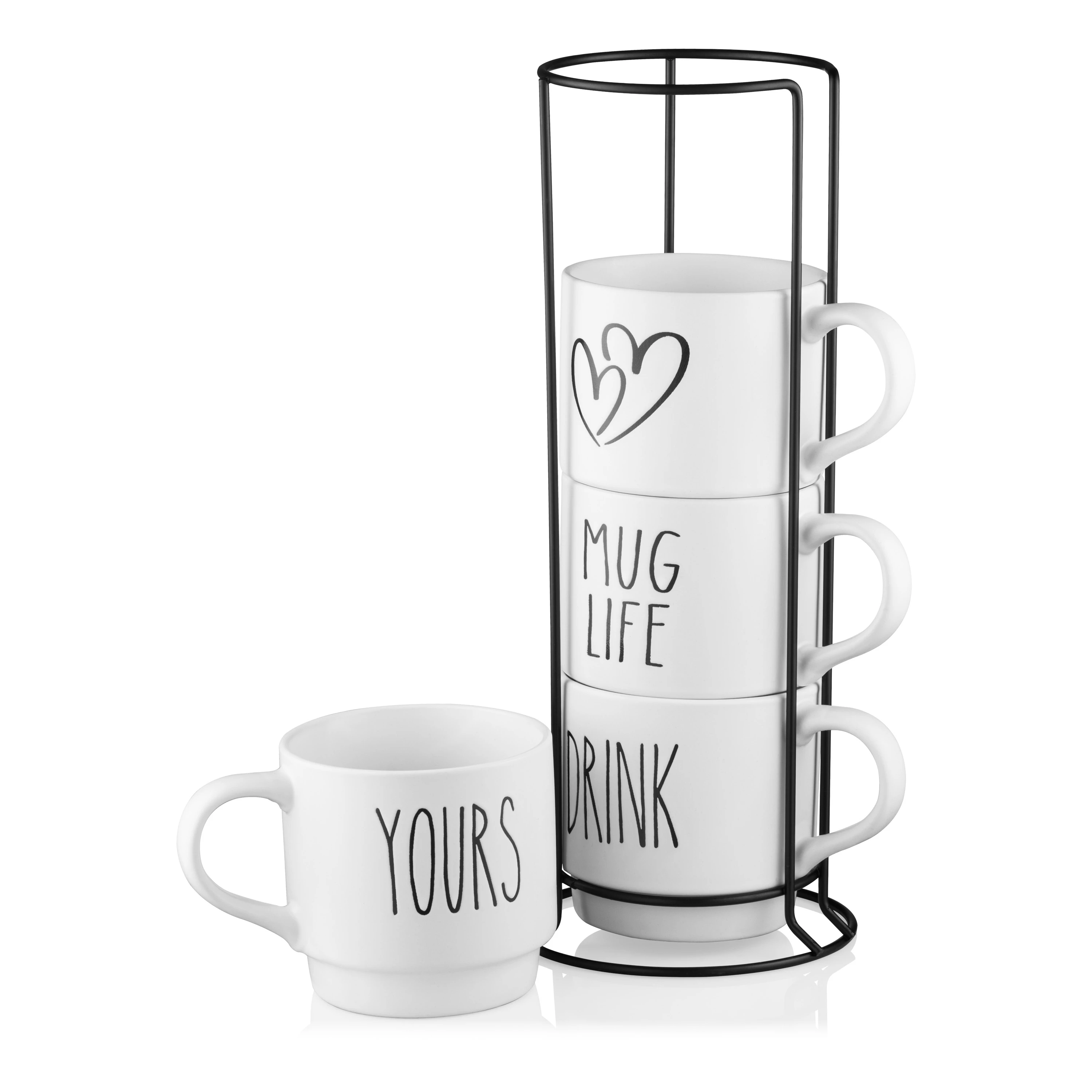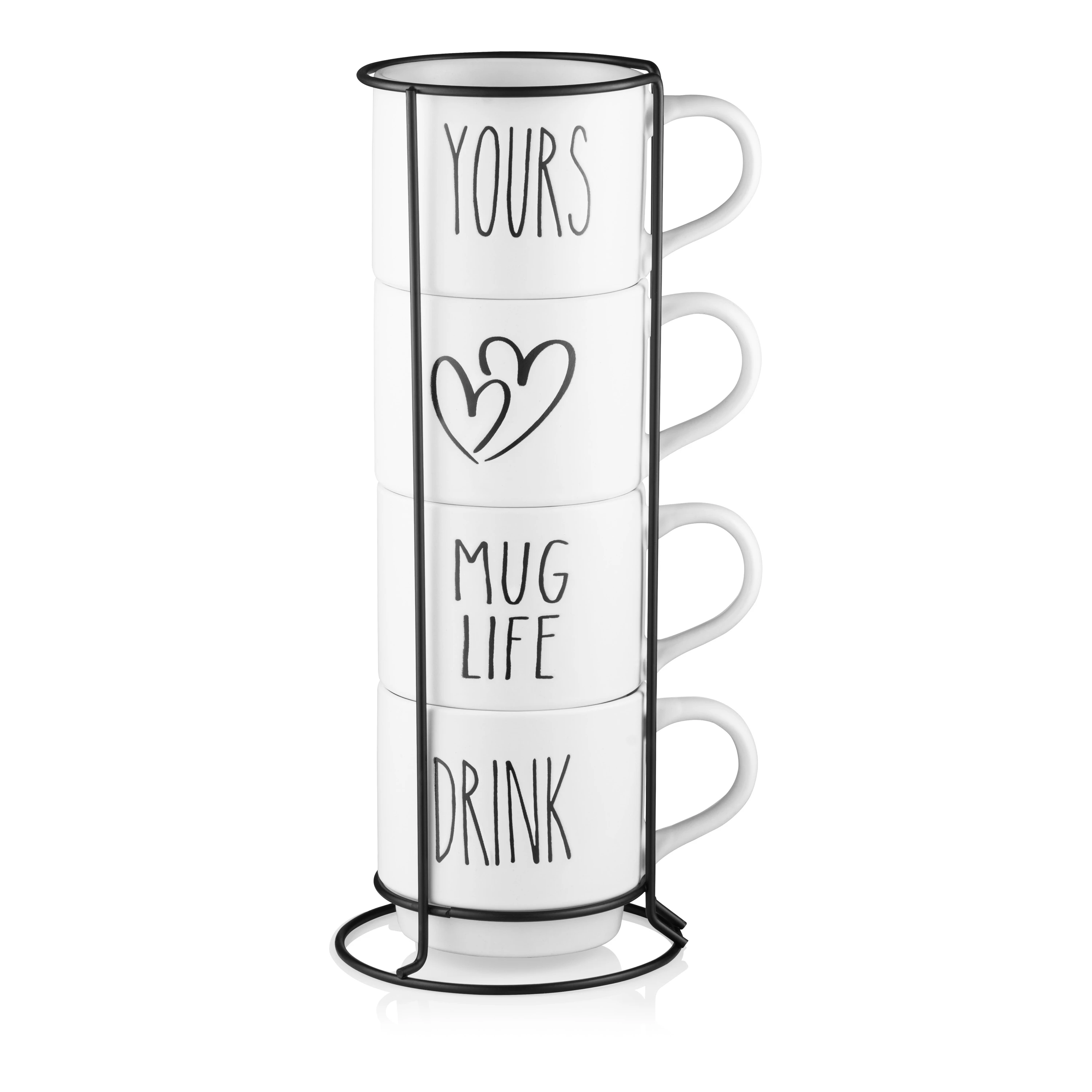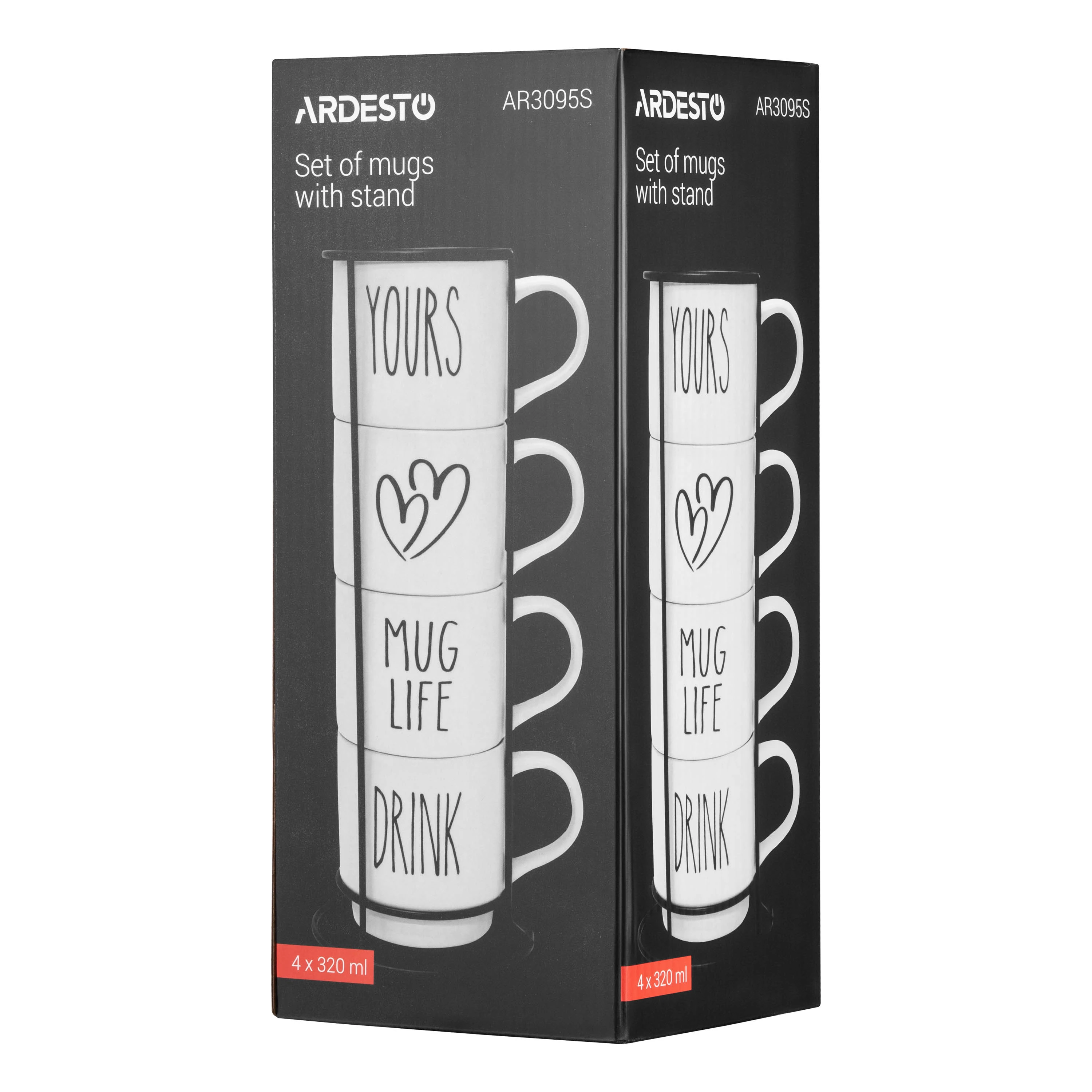 Набір чашок на підставці ARDESTO – це ліпший вибір для всіх, хто цінує красу та практичність. У наборі 4 оригінальні та зручні чашки білого кольору, які доповнено написом. Посуд виготовлено з кераміки – екологічного, міцного та довговічного матеріалу, який забезпечить тривалий термін слугування. Чашки об’ємом 320 мл, діаметром 9,2 см і висотою 8,5 см стануть в пригоді для подавання як чаю, так і кави. Вироби можна використовувати в мікрохвильовій печі та мити в посудомийній машині. Підставка виготовлена з металу, – це зручне та стильне рішення для організації простору, з нею улюблені чашки завжди будуть напохваті. Набір буде вдалим подарунком для близьких і друзів.