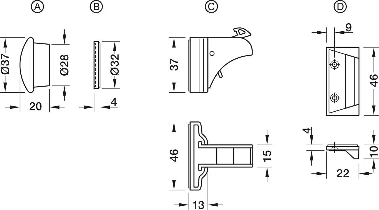 - Робоча висота вузла / монтажна висота 46 мм