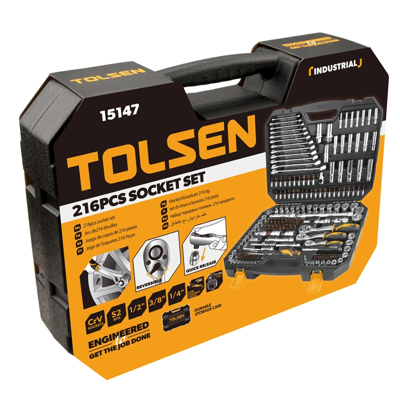 Набір інструментів Tolsen, 216шт, 1/2", 1/4", 3/8", комбіновані ключі, торцевы головки, біти,CrV, ке