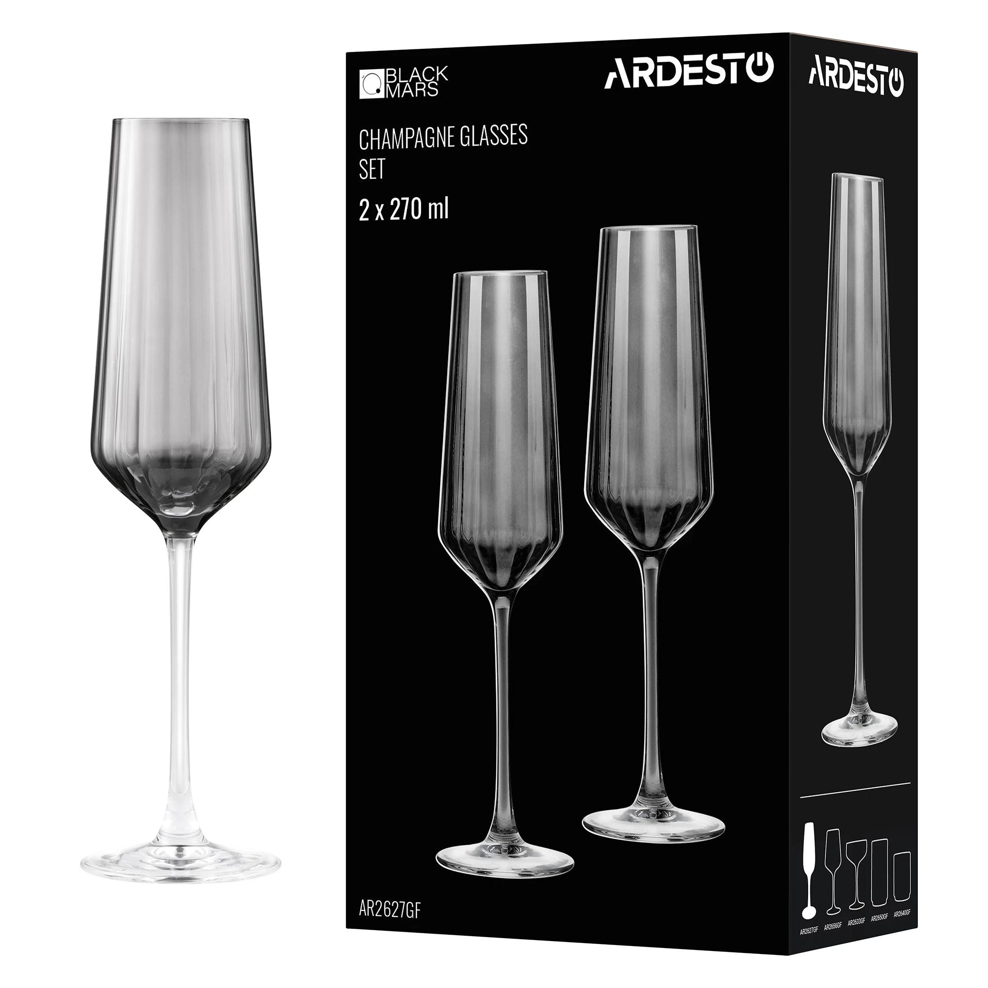 Набір келихів для шампанського ARDESTO Black Mars Alcor 270мл, 2шт, скло, сірий