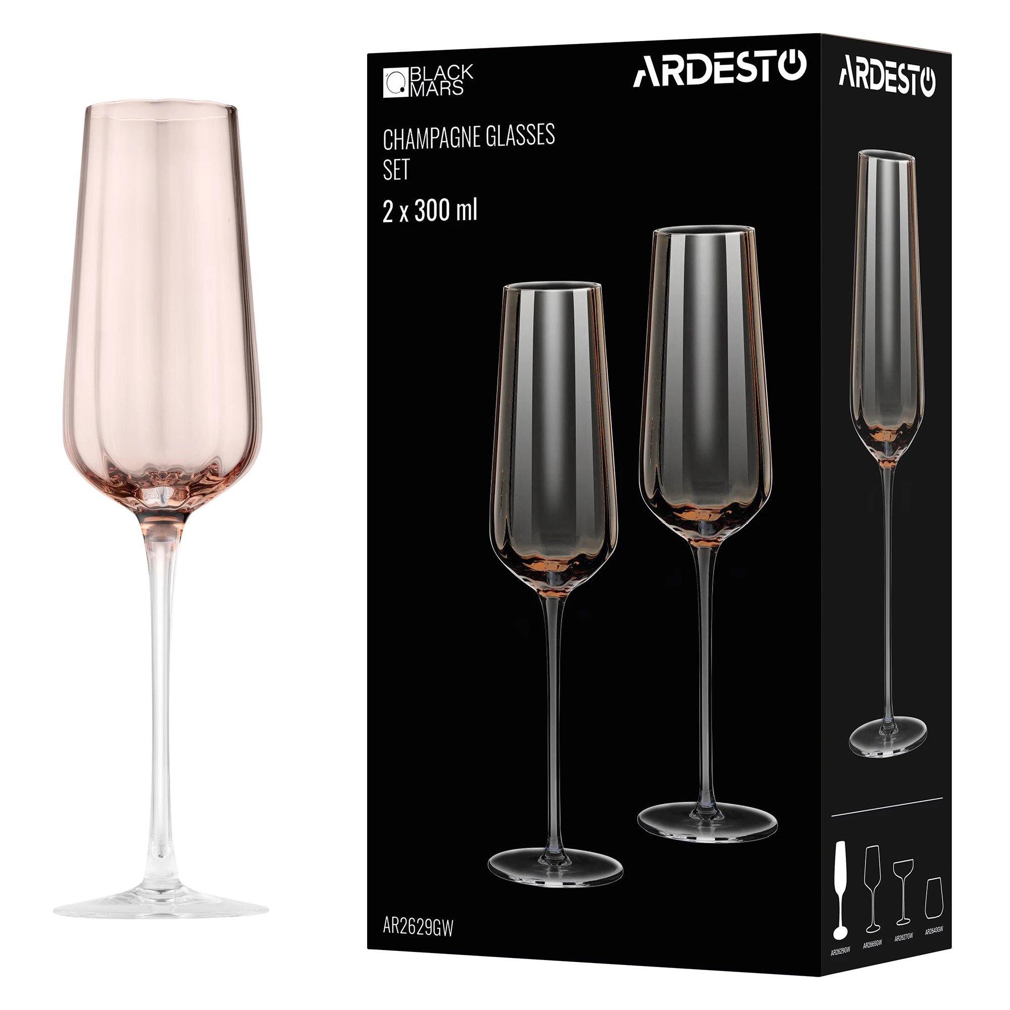 Набір келихів для шампанського ARDESTO Black Mars Altair 300мл, 2шт, скло, золотистий