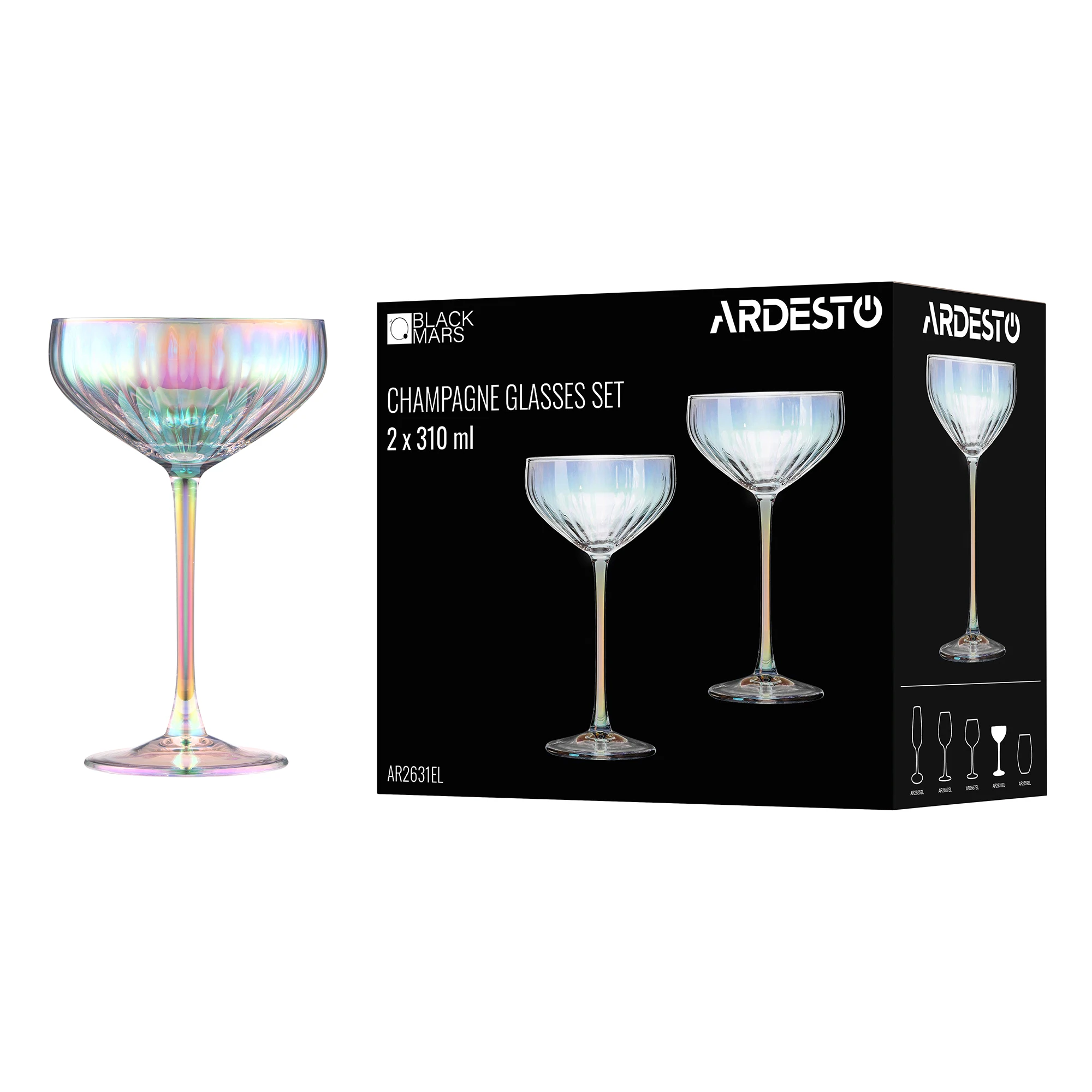 Набір келихів для шампанського ARDESTO Black Mars Zenith 310мл, 2шт, скло, прозорий
