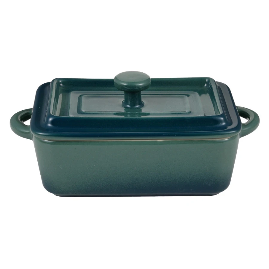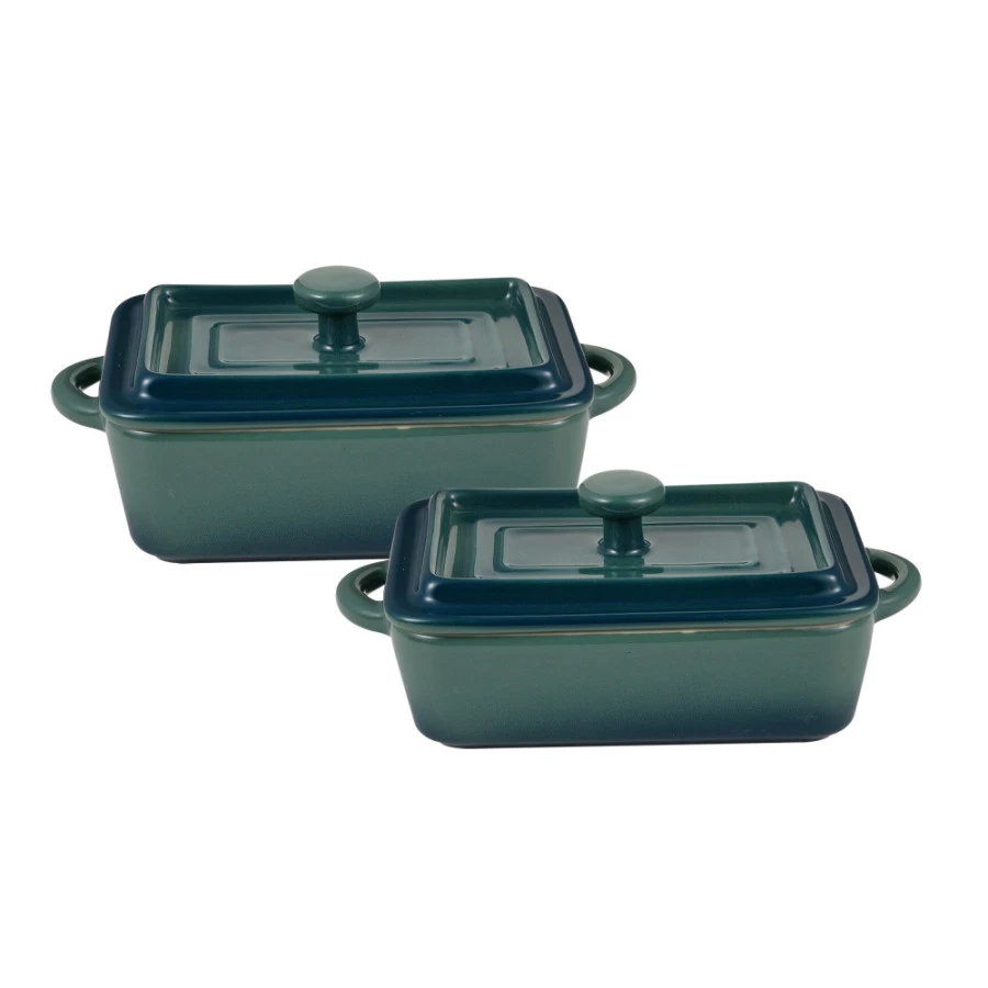 Набір керамічних міні-каструль з кришками Bergner Excalibur, зелений, прямокутні, 2 шт (BG-13363-GR)