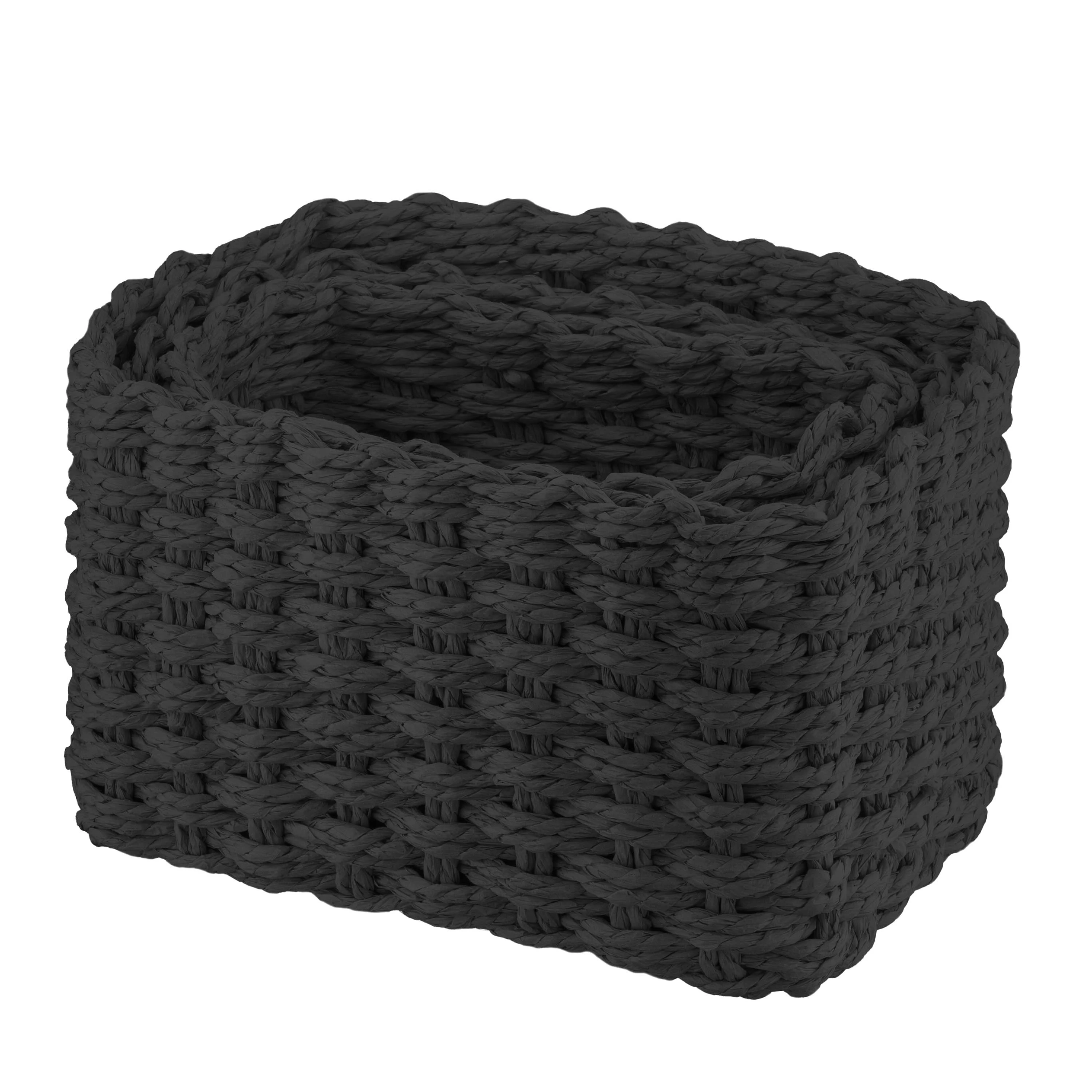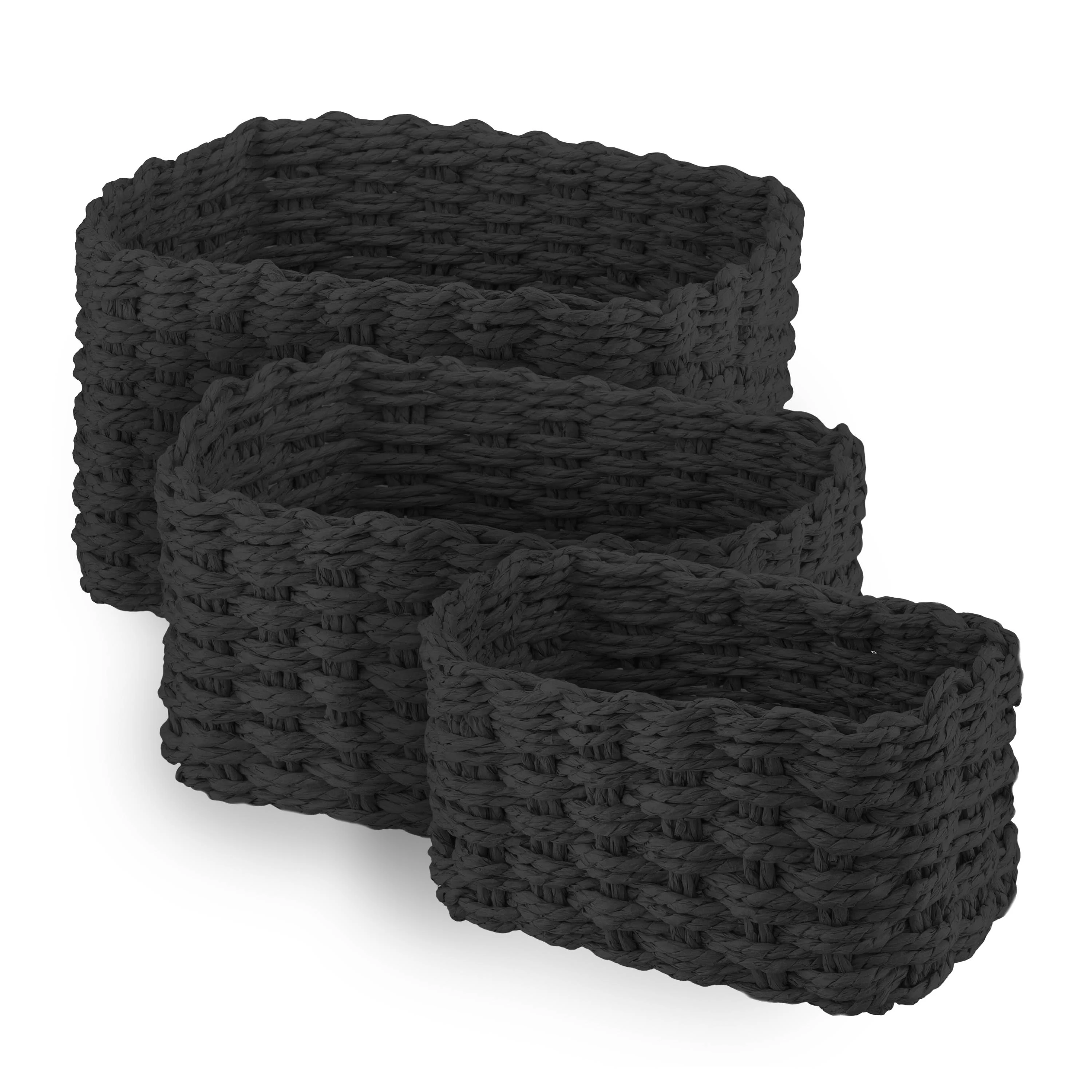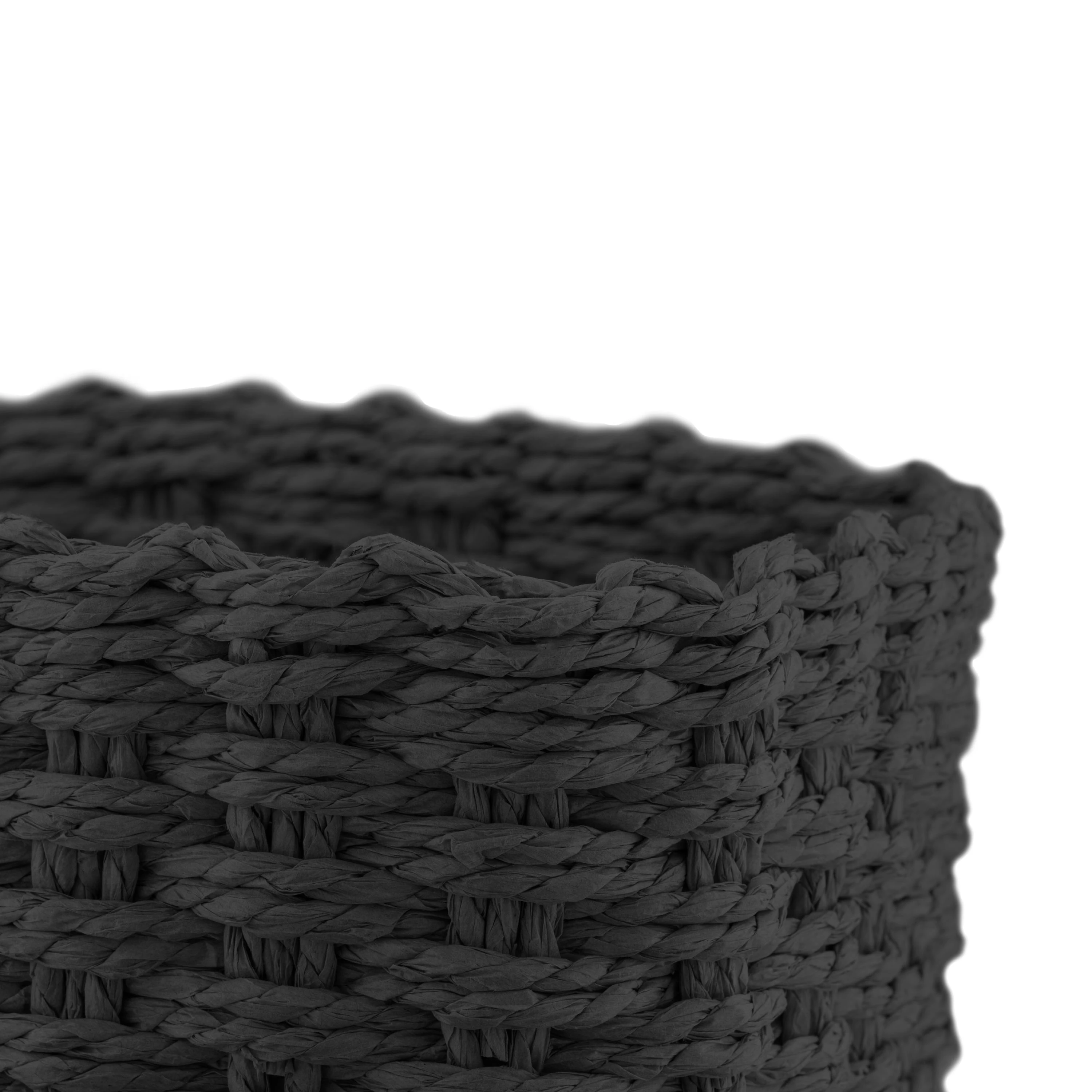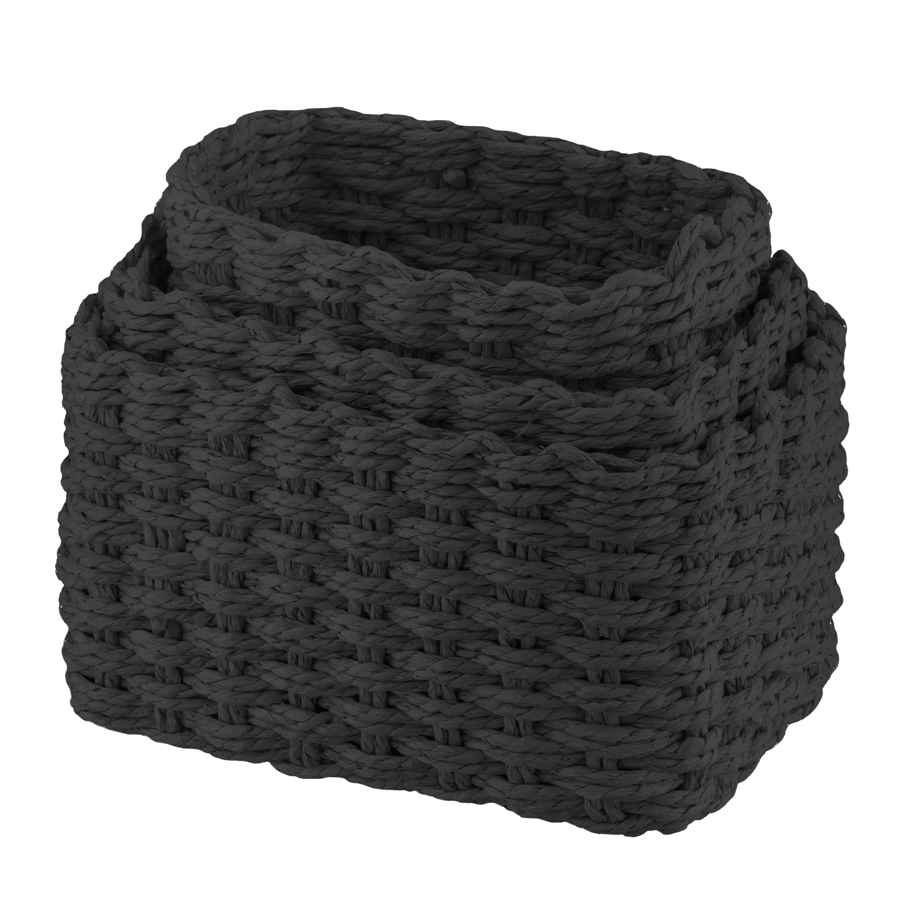 Набір плетених кошиків ARDESTO Prestigio – зручне рішення для зберігання речей у будь-якому приміщенні. У комплектованні є три кошики різного об’єму: 3,3 / 2,2 / 1,4 л. Легкі та практичні кошики виготовлені з паперового шпагату й мають привабливу плетену текстуру. Насичений чорний колір додає універсальності, а компактний розмір дає змогу зручно організувати простір у шафі, на полиці чи відкритій поверхні.