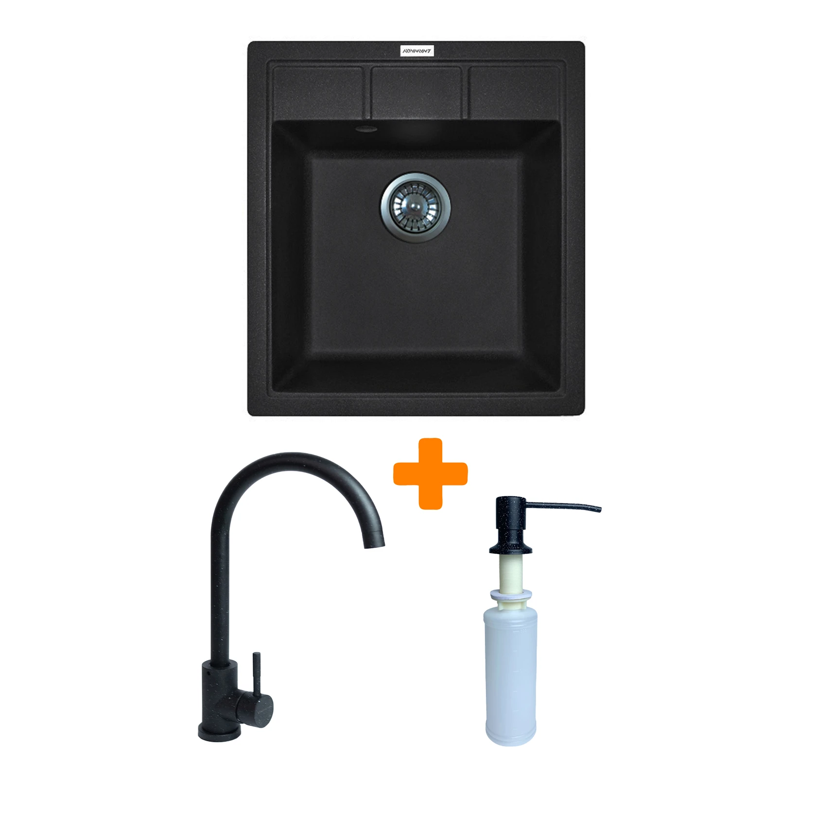 Набір Adamant Brick поєднує мийку зі штучного каменю, зручний кухонний змішувач та дозатор мийного засобу. Глибока квадратна чаша створює комфорт під час щоденного використання та легко очищується завдяки непористій структурі. Змішувач із нержавіючої сталі має плавний хід та можливість обертання виливу. Дозатор встановлюється у мийку або стільницю та дозволяє подавати мийний засіб одним натисканням. Це готовий комплект для сучасної та функціональної кухні.