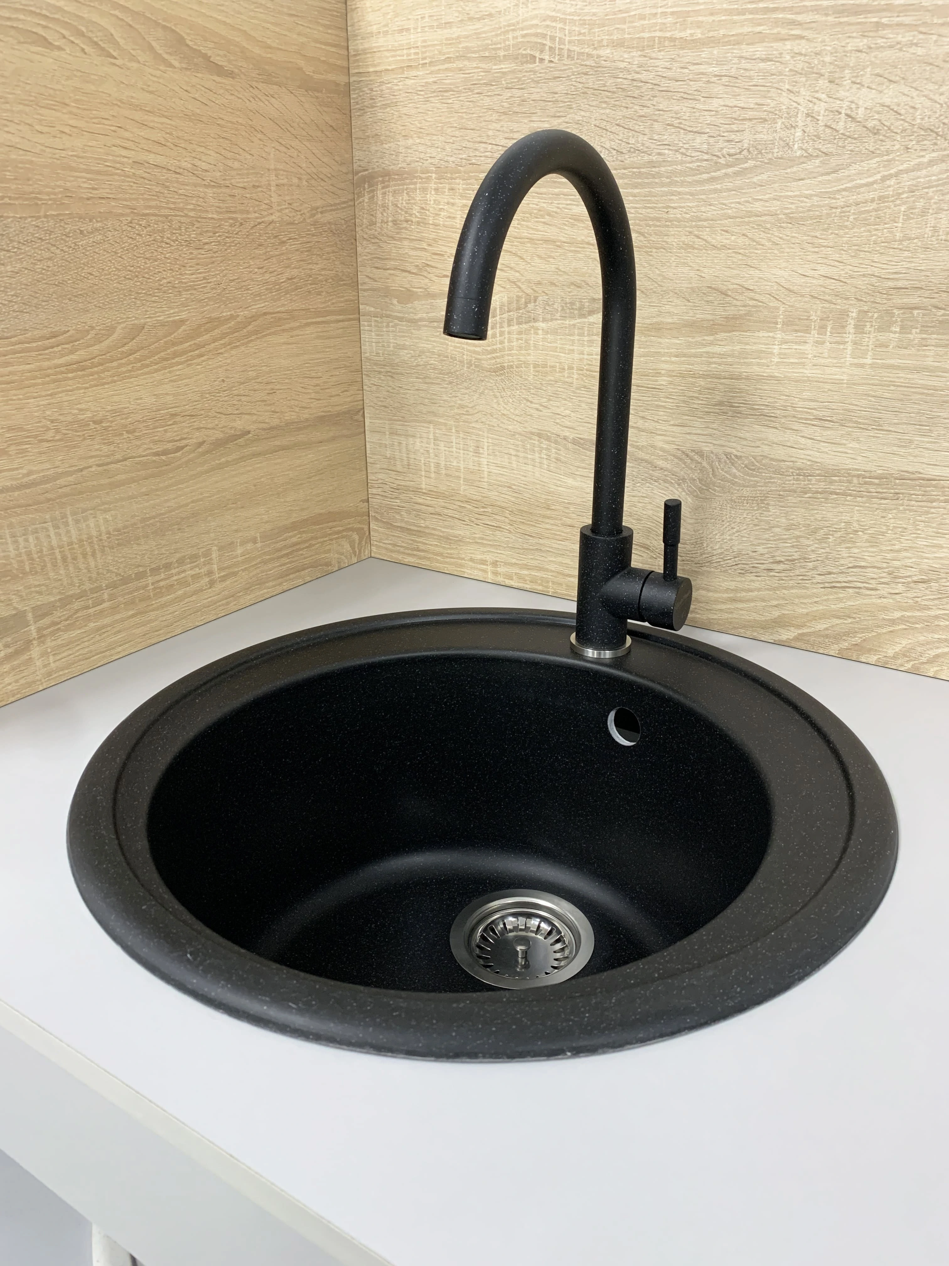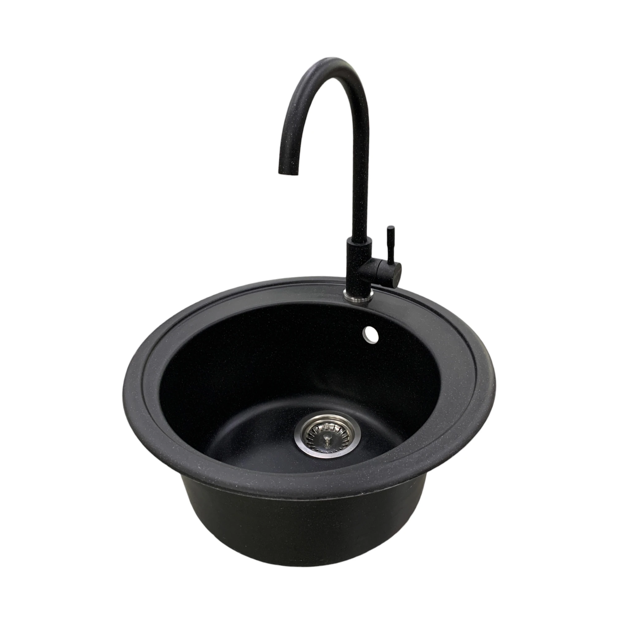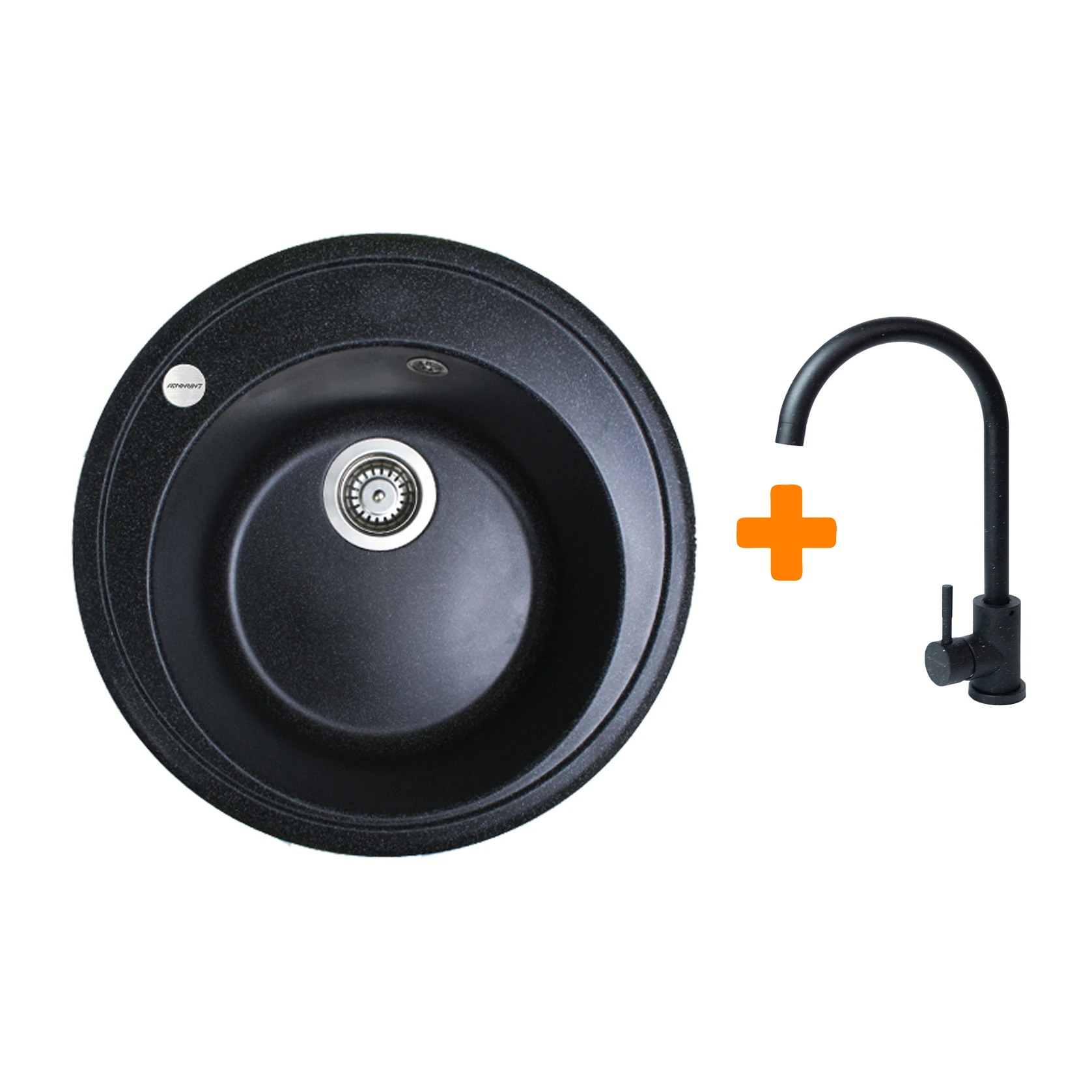 Набір кухонна Adamant Sun, штучний камінь, кругла, без крила, 510x200мм, чаша - 1, врізна, чорний +