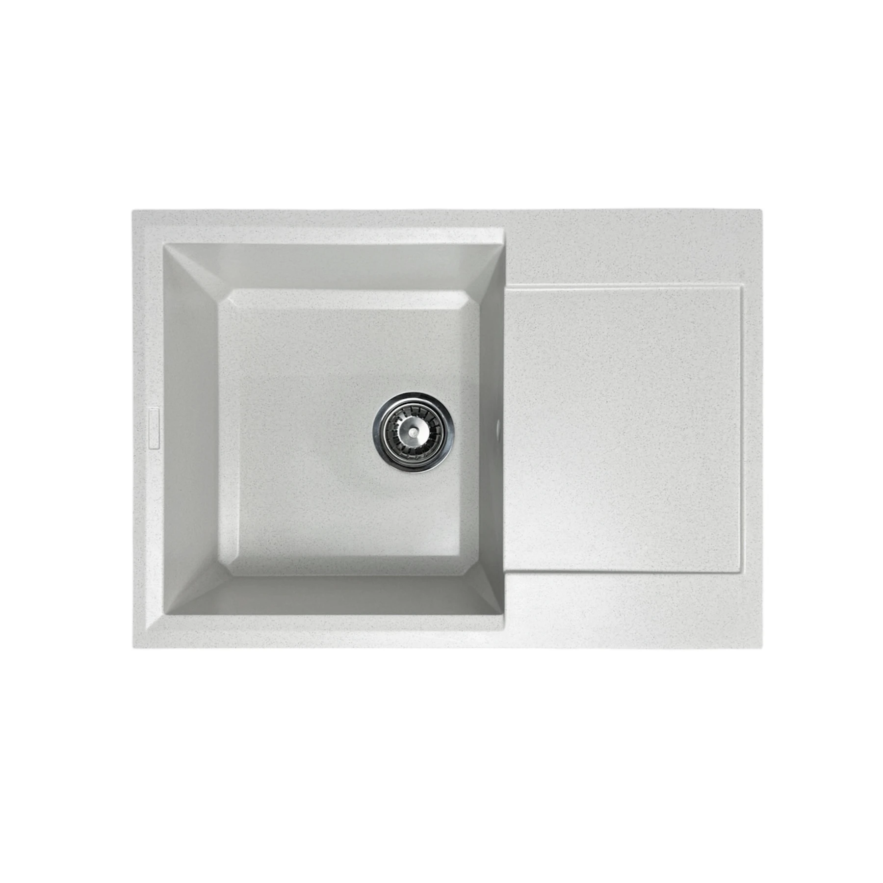 Кухонний набір Adamant Horizon Medium поєднує містку прямокутну мийку зі штучного каменю та ергономічний змішувач для комфортної роботи. Глибока чаша та зручне крило створюють достатньо простору для миття посуду та обробки продуктів. Матова поверхня зберігає охайний вигляд навіть за частого використання. Технологія Solid Surface забезпечує високу довговічність та стійкість до впливу зовнішніх факторів. Це практичний вибір для сучасної кухні.