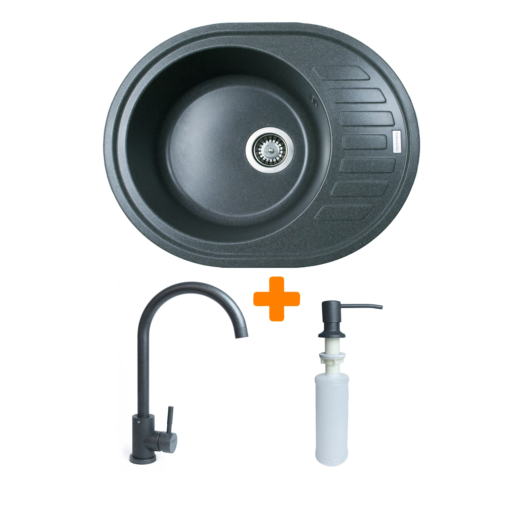 Набір Adamant Ovum складається з овальної врізної мийки зі штучного каменю з крилом, змішувача та дозатора, утворюючи практичне комплексне рішення для кухні. Мийка виконана за технологією Solid Surface, що забезпечує високу стійкість до температур і щоденних навантажень. Глибока чаша зручна для роботи з великим посудом та продуктами. Змішувач і дозатор виготовлені з надійних матеріалів та доповнюють загальну функціональність. Це сучасний набір для тих, хто цінує комфорт і довговічність.