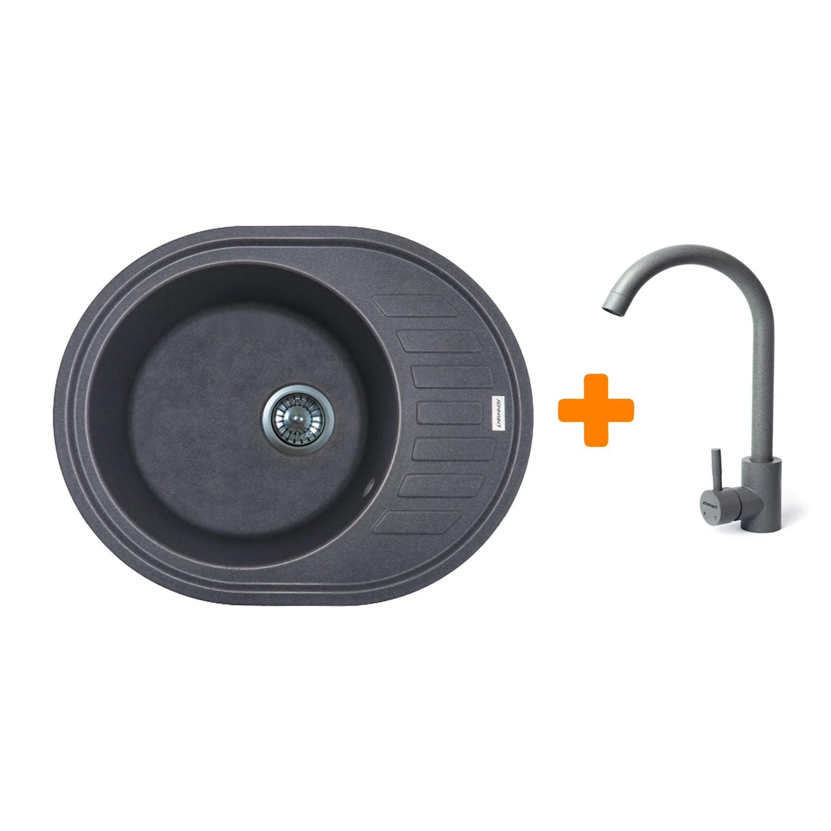 Набір кухонний Adamant Ovum, штучний камінь, овальна, з крилом, 615х495х200мм, чаша - 1, врізна, сір