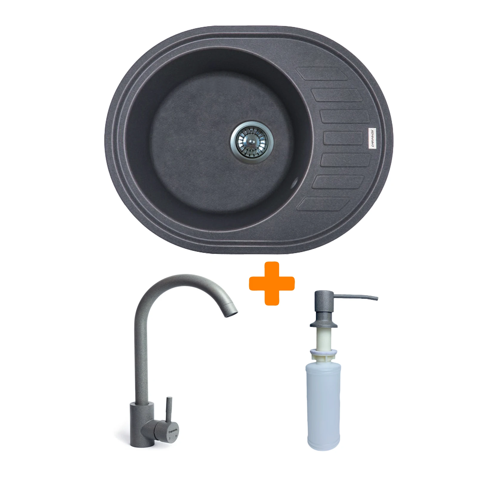 Набір Adamant Ovum складається з овальної врізної мийки зі штучного каменю з крилом, змішувача та дозатора, утворюючи практичне комплексне рішення для кухні. Мийка виконана за технологією Solid Surface, що забезпечує високу стійкість до температур і щоденних навантажень. Глибока чаша зручна для роботи з великим посудом та продуктами. Змішувач і дозатор виготовлені з надійних матеріалів та доповнюють загальну функціональність. Це сучасний набір для тих, хто цінує комфорт і довговічність.