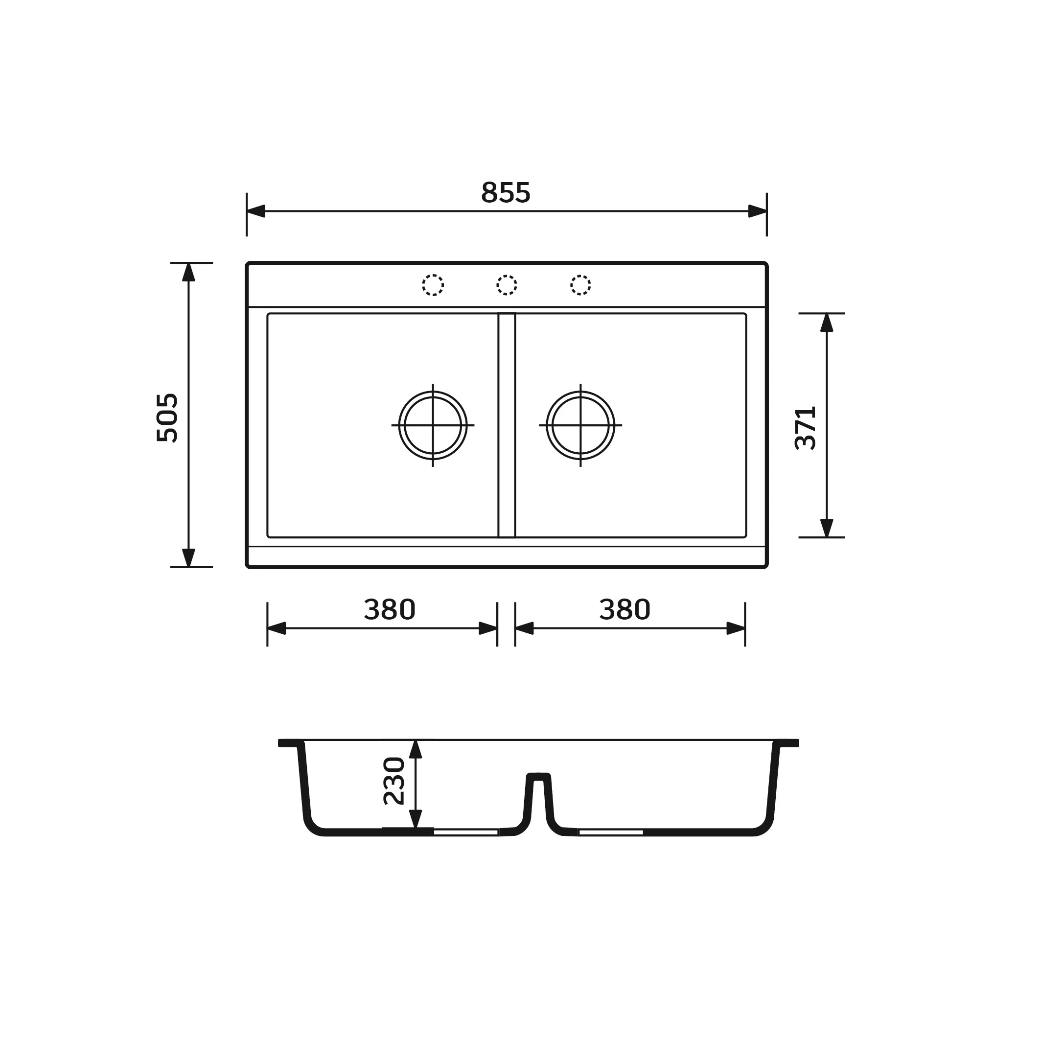 Набір кухонний Adamant Similar, штучний камінь, прямокут., без крила, 885x505x230мм, чаша - 2, врізн