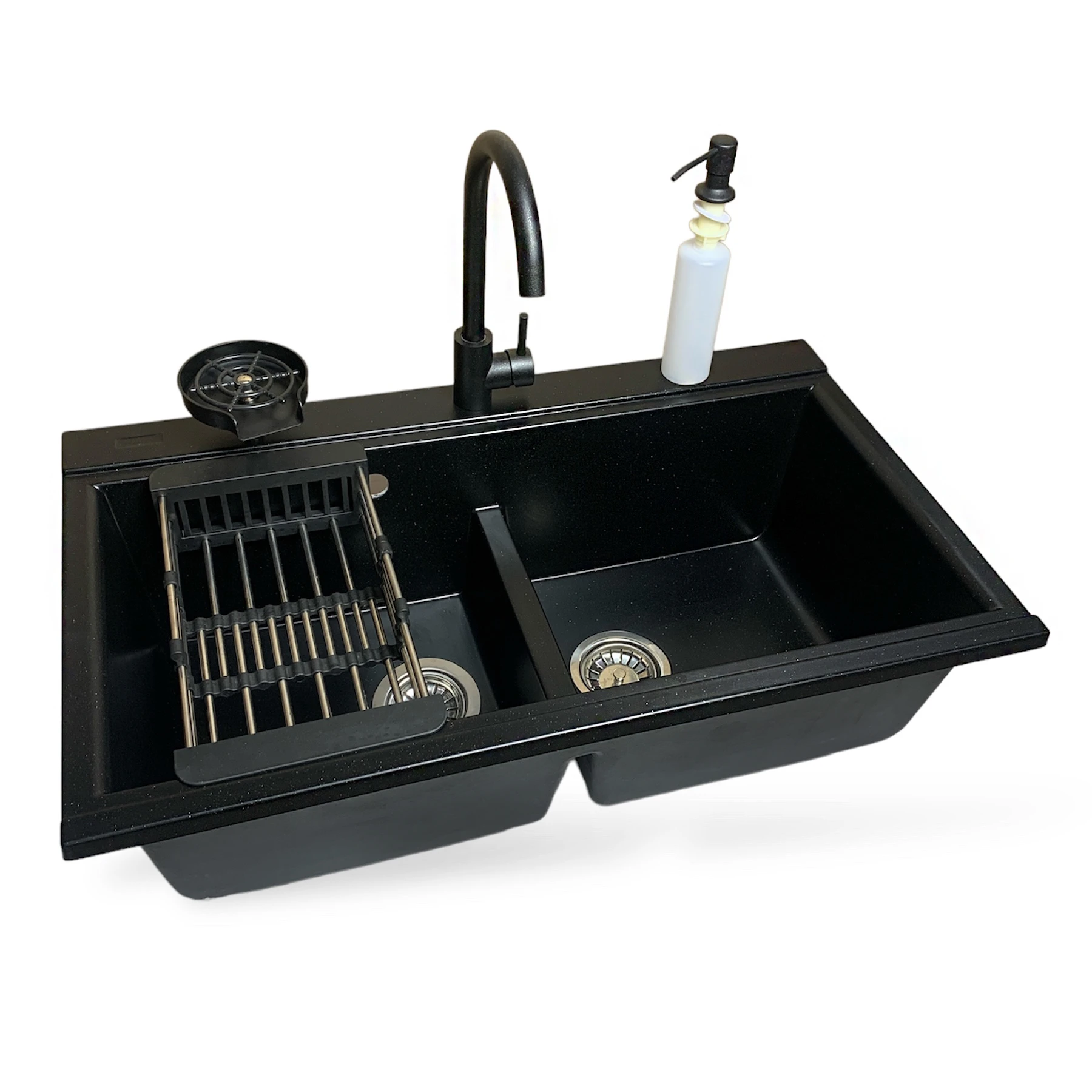 - Комплектація коландер; змішувач; дозатор; сифон; ополіскувач склянок;