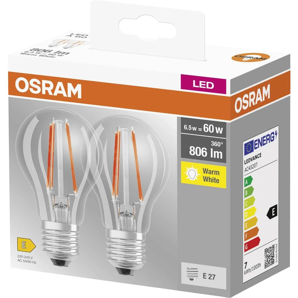 Набір ламп 2шт OSRAM LED E27 6.5Вт 2700К 806Лм A60