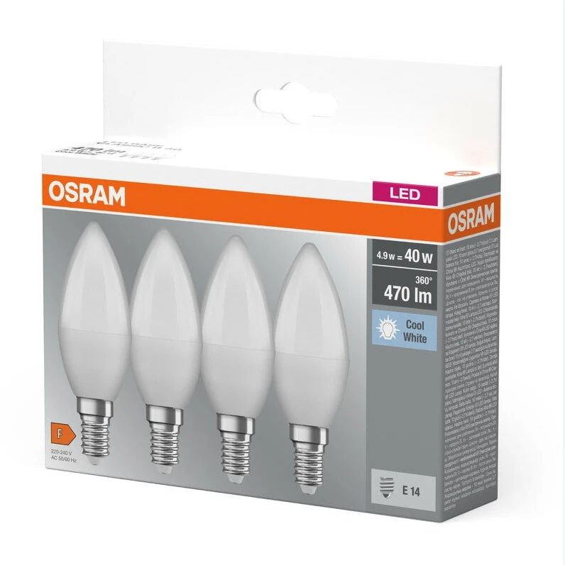 Набір ламп 4шт OSRAM LED E14 4.9Вт 4000К 470Лм B40