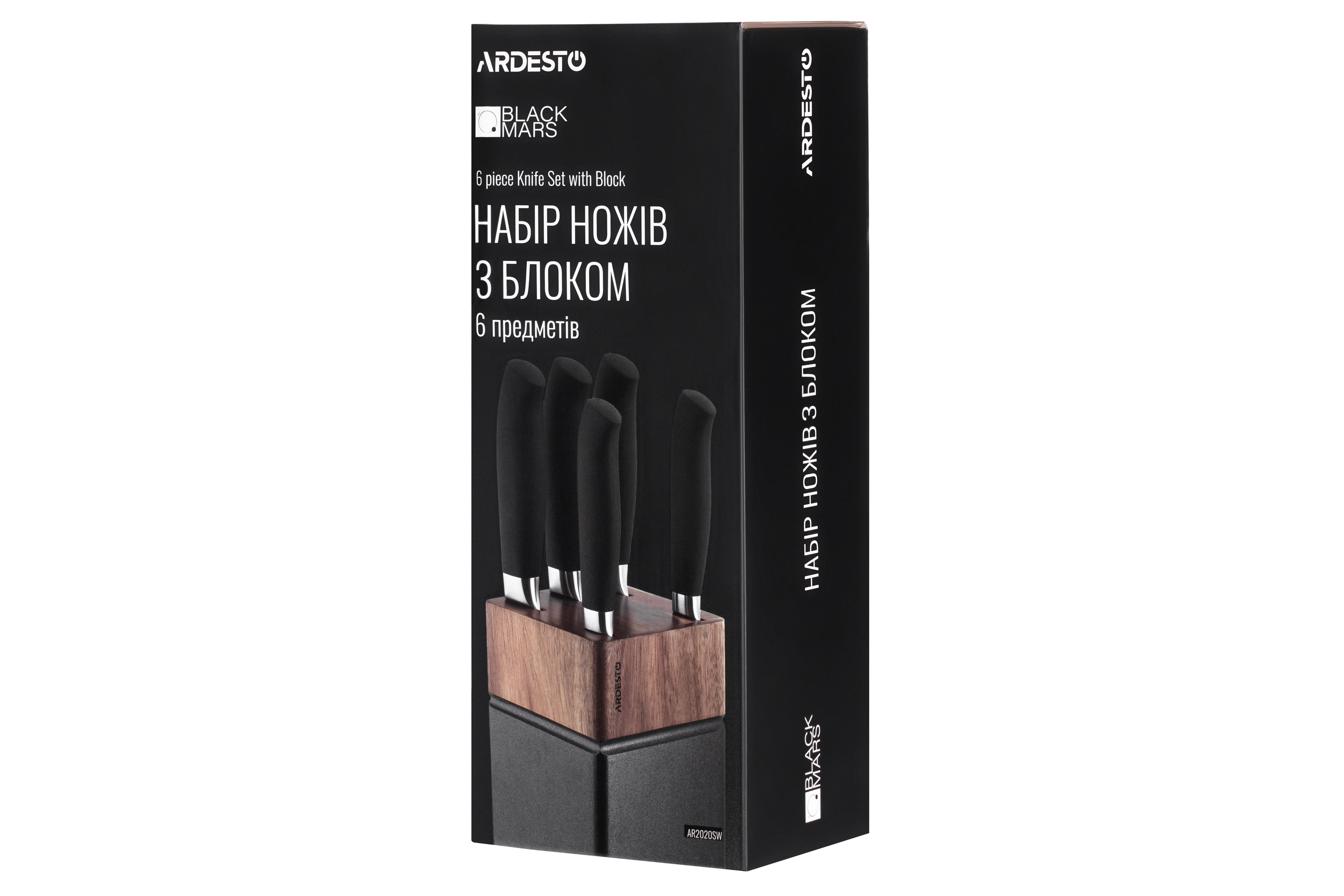 Набір ножів з блоком Ardesto Black Mars, 6 предметів, нержавіюча сталь, дерево