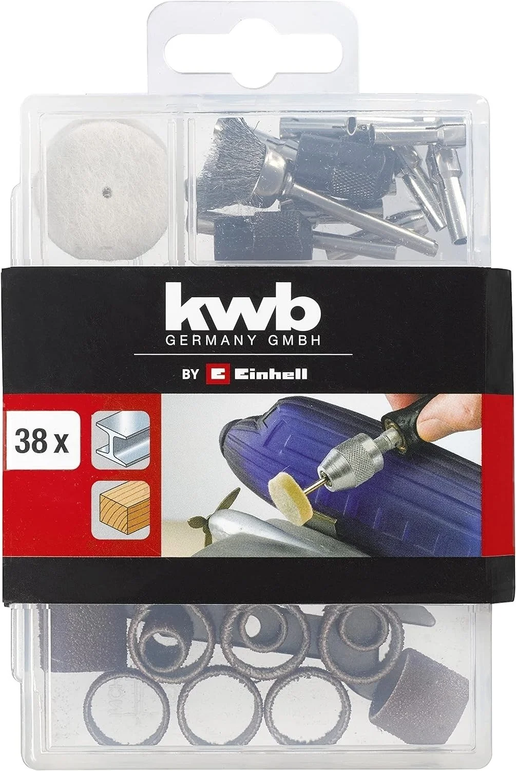 Набір шліфувального та полірувального приладдя з 38 предметів від KWB можна використовувати з подвійною шліфувальною машиною Einhell TC-XG 75. За допомогою різних шліфувальних кругів, шліфувальних роликів і полірувальних дисків невеликі шліфувальні та полірувальні роботи виконуються точно, легко і швидко.