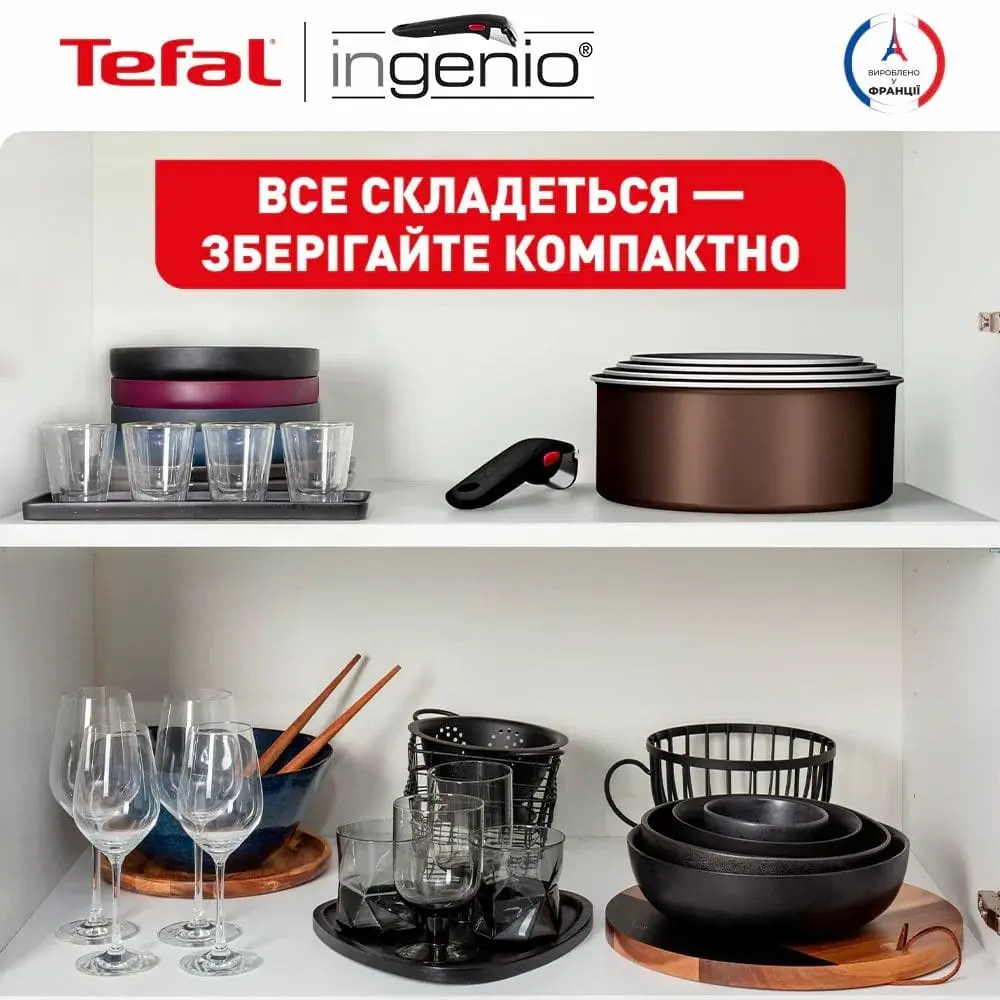 Усе, що вам потрібно, щоб спростити повсякденне домашнє приготування — набір Tefal Ingenio XL Intense: знімна ручка, сковорода, яку можна використовувати в духовці та холодильнику, та компактна конструкція, яку можна штабелювати. Посуд Ingenio оснащений індикатором Thermo-Signal та антипригарним покриттям нового покоління.