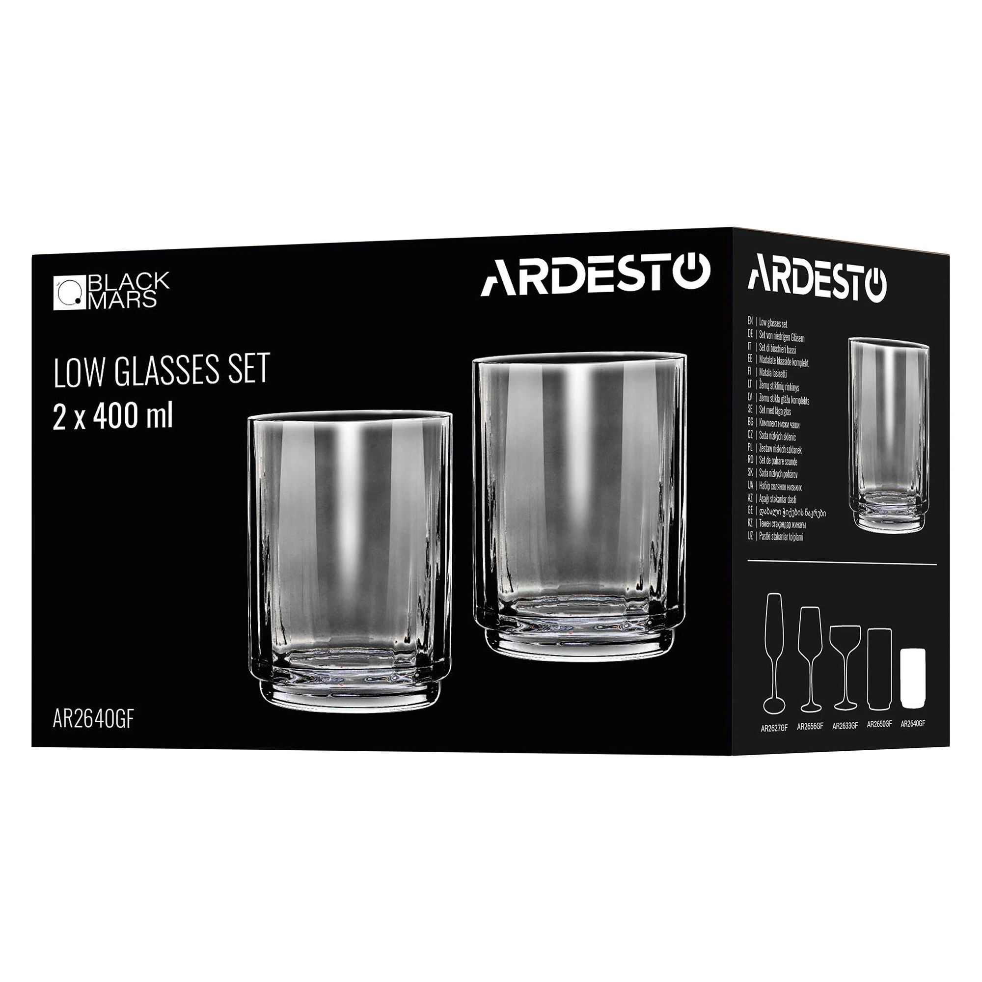 Набір склянок низьких ARDESTO Black Mars Alcor 400мл, 2шт, скло, сірий