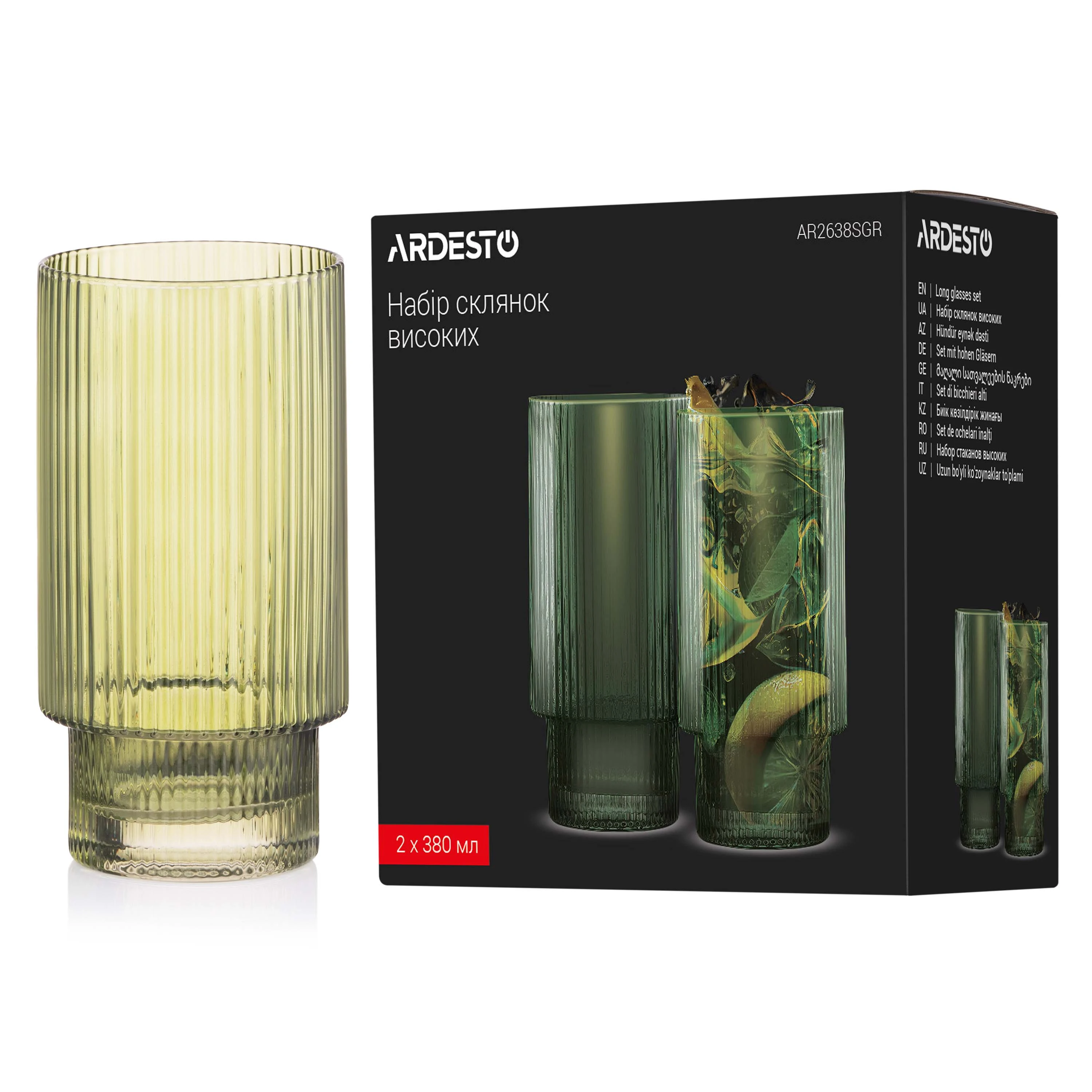 Набір склянок високих Ardesto 380мл, 2шт, скло, зелений