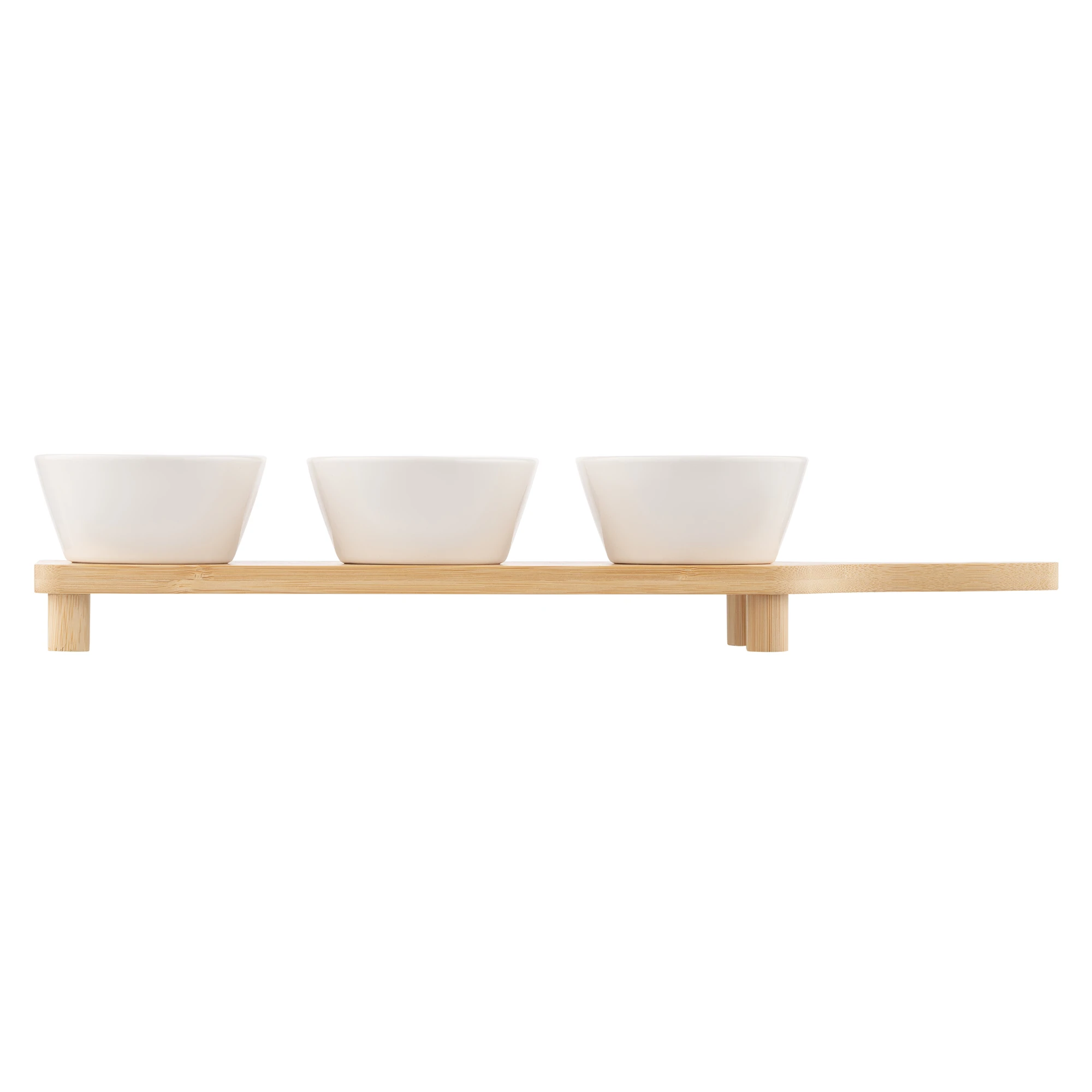 Набір соусників на підставці ARDESTO Midori, 3шт., 110мл, порцеляна, бамбук