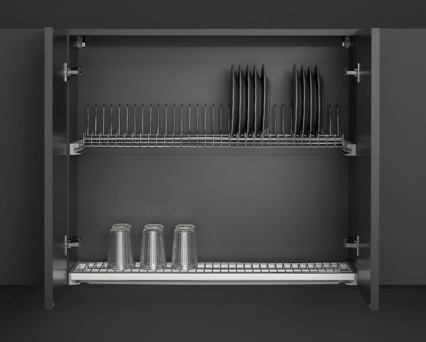 Сушки для посуду Vibo - це ідеальне рішення для організації простору в вашій кухні. Вони прекрасно підходять для зберігання всіх необхідних речей та інгредієнтів, які використовуються щодня в приготуванні улюблених страв. Сушки можуть бути повністю або частково висунуті, що дозволяє організувати всі засоби зручним та логічним способом, незалежно від наявного простору в вашій кухні. Кожна деталь сушок продумана з точністю, забезпечуючи зручність, міцність та функціональність при зберіганні будь-якого виду посуду та кухонного інвентарю.
