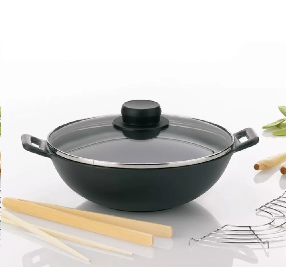 Такий набір ‒ прекрасний вибір для тих, хто захоплюється азіатською кухнею. У чавунній сковороді ВОК зручно як обсмажувати страви, так і тушкувати їх. Під час приготування, температура розподіляється рівномірно за рахунок досить товстих стінок і дна сковороди.