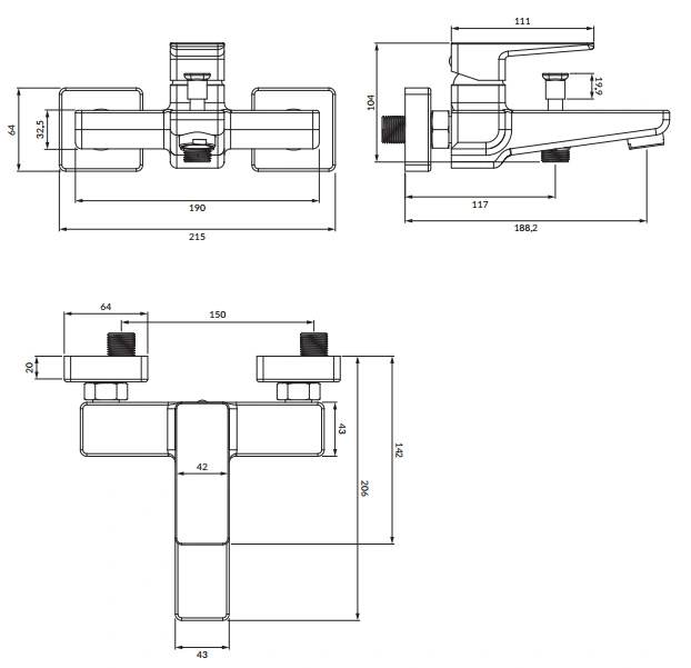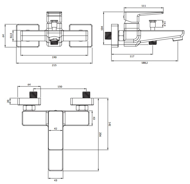 набір змішувачів для ванни Omnires Parma chrome (PM7430CR+ PM7410CR+ DAVISSXLUXCR)