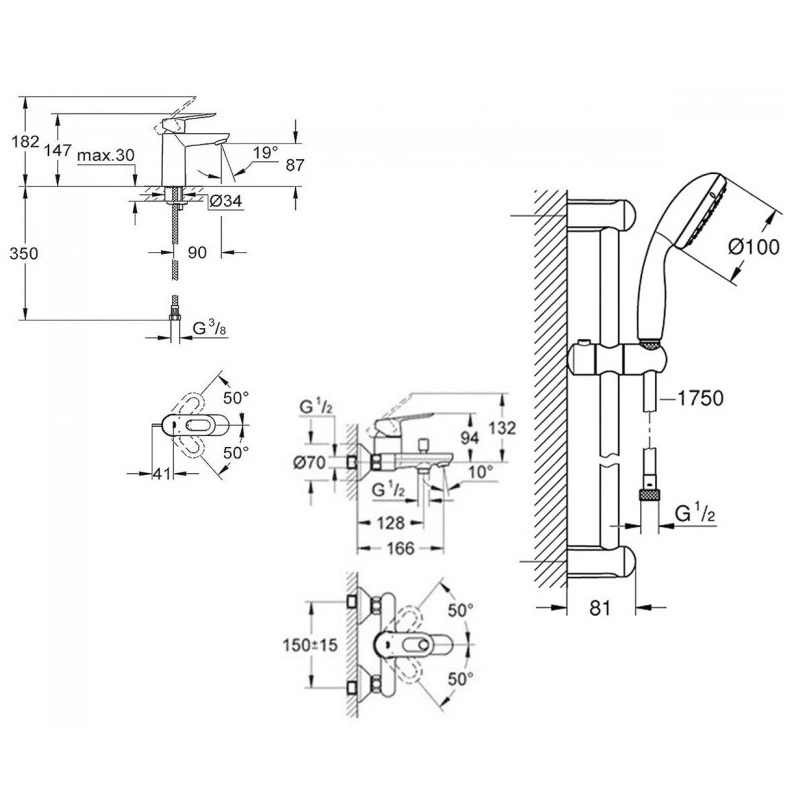 Набір змішувачів для ванни S-Size Grohe BauLoop (123214S)