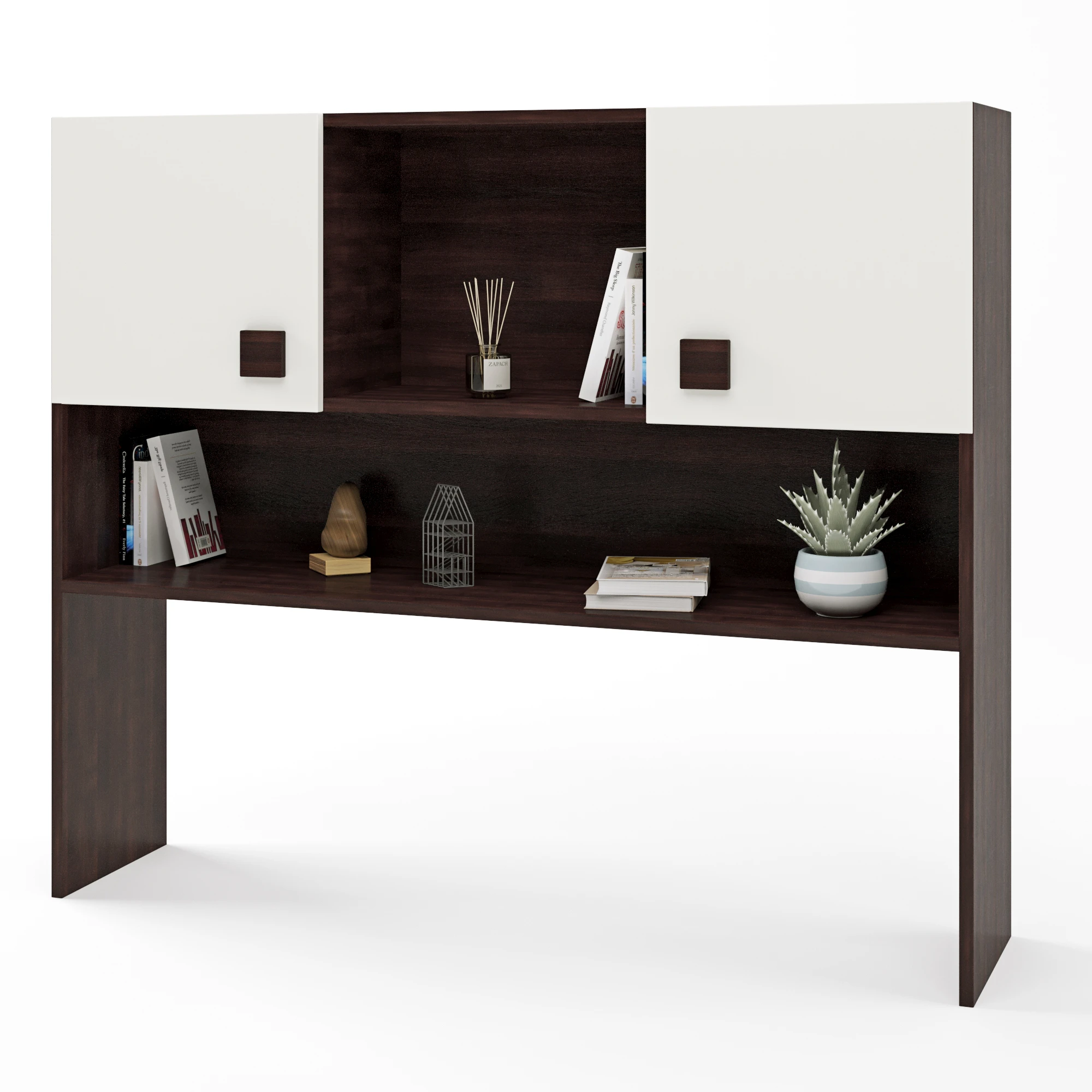 Відкрийте нові можливості організації простору з надбудовою для столу Еверест Соната. Цей елегантний елемент інтер'єру, виконаний у темному венге з білими акцентами, не лише підкреслить ваш стиль, але й створить додаткове місце для зберігання важливих речей. Завдяки продуманому дизайну, надбудова легко інтегрується в будь-який робочий простір, забезпечуючи комфорт та зручність.