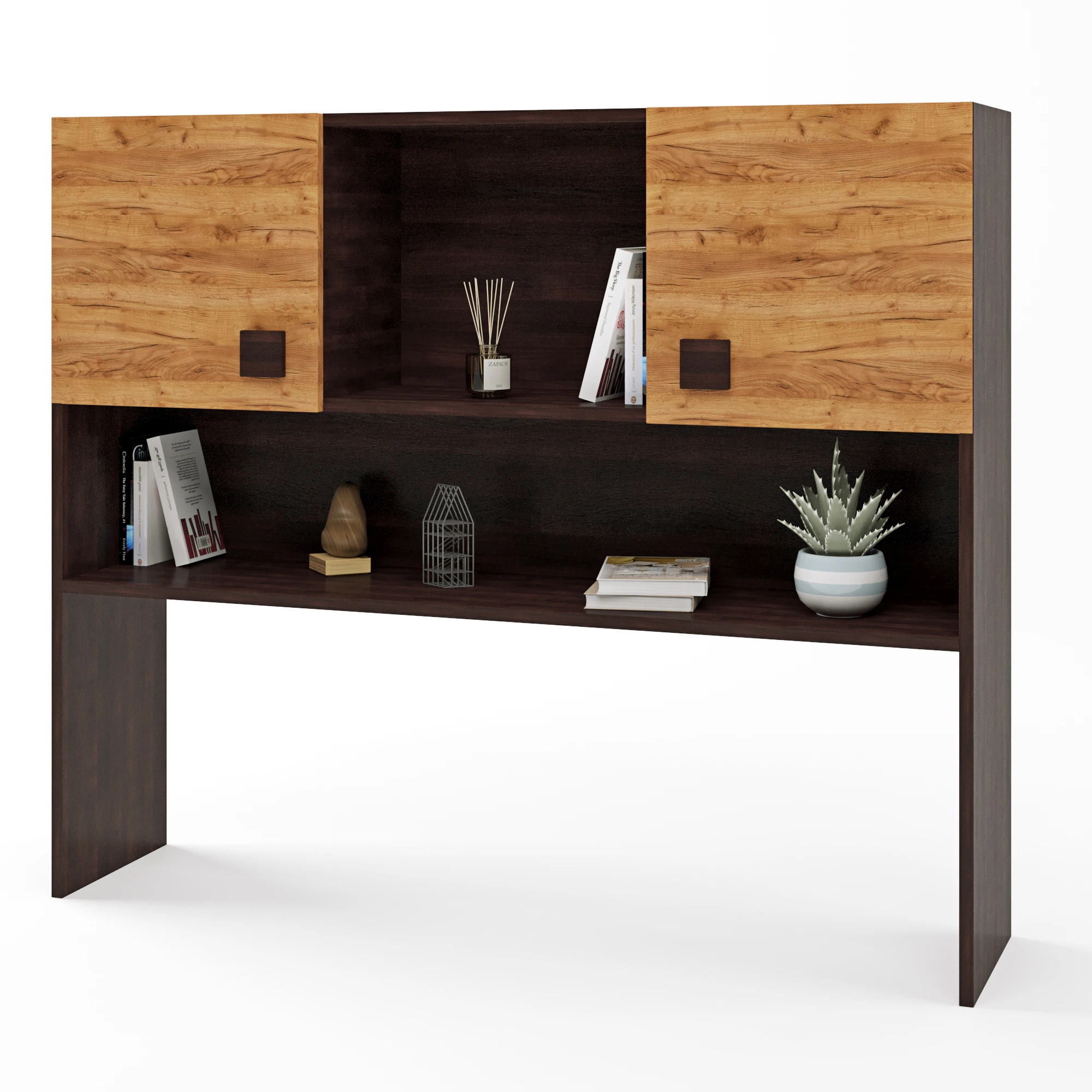 Відкрийте для себе надбудову для столу Еверест Соната, яка поєднує в собі стильний дизайн та високу функціональність. Виконана в сучасному поєднанні темного венге та дуба крафт золотого, ця надбудова стане ідеальним доповненням вашого робочого простору, додаючи нотку елегантності та затишку. Завдяки своєму продуманому дизайну, вона дозволяє ефективно організувати робоче місце, забезпечуючи достатньо місця для зберігання документів та канцелярії.