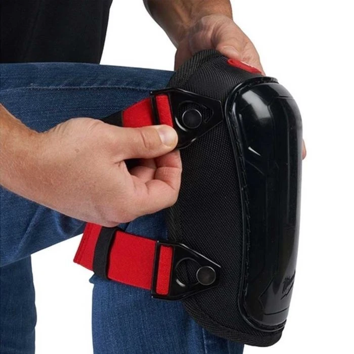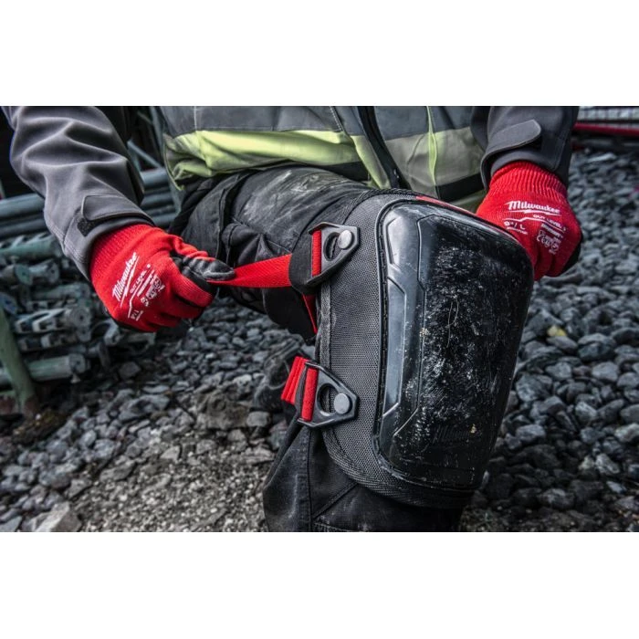 Milwaukee 4932478137 Hard — жорсткі захисні наколінники для будівельних і монтажних робіт на бетоні, плитці та щебені. Жорстка пластикова чашка витримує контакт із грубими поверхнями, а товста піна з гелевою зоною всередині знижує тиск на коліно при тривалій роботі. Подвійні регульовані еластичні ремені з пряжками надійно фіксують наколінники без сповзання протягом робочого дня. Сертифіковані за стандартом EN 14404 рівень 2 — професійний клас захисту для будівельних і монтажних робіт.