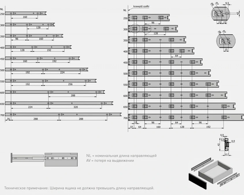 Кулькові напрямні GTV PK-0H45300GX2-A висотою 45 мм і довжиною 300 мм розроблені для компактних меблевих шухляд. Вони забезпечують повне висування і витримують навантаження до 25 кг, що робить їх оптимальним вибором для домашніх та офісних меблів.