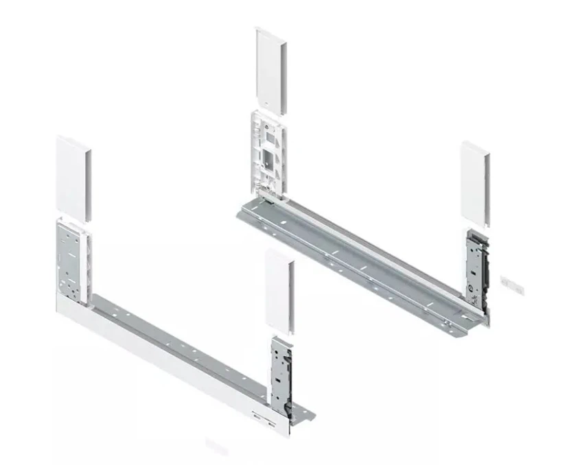 Комплектуючі до висувних систем Blum відповідають найвищим стандартам якості та безпеки, що робить їх ідеальним вибором для будь-яких меблевих проектів. Вони легко монтуються та налаштовуються, що спрощує процес виготовлення меблів та забезпечує їх надійну роботу протягом тривалого часу