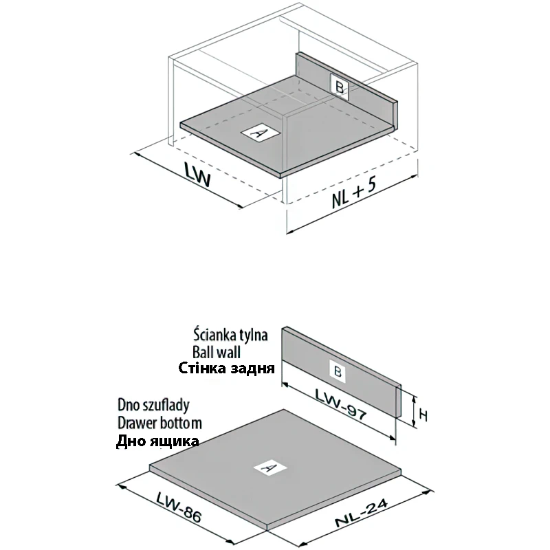 - Спосіб відкривання / закриття напрямних Повного висуву з доводчиком
