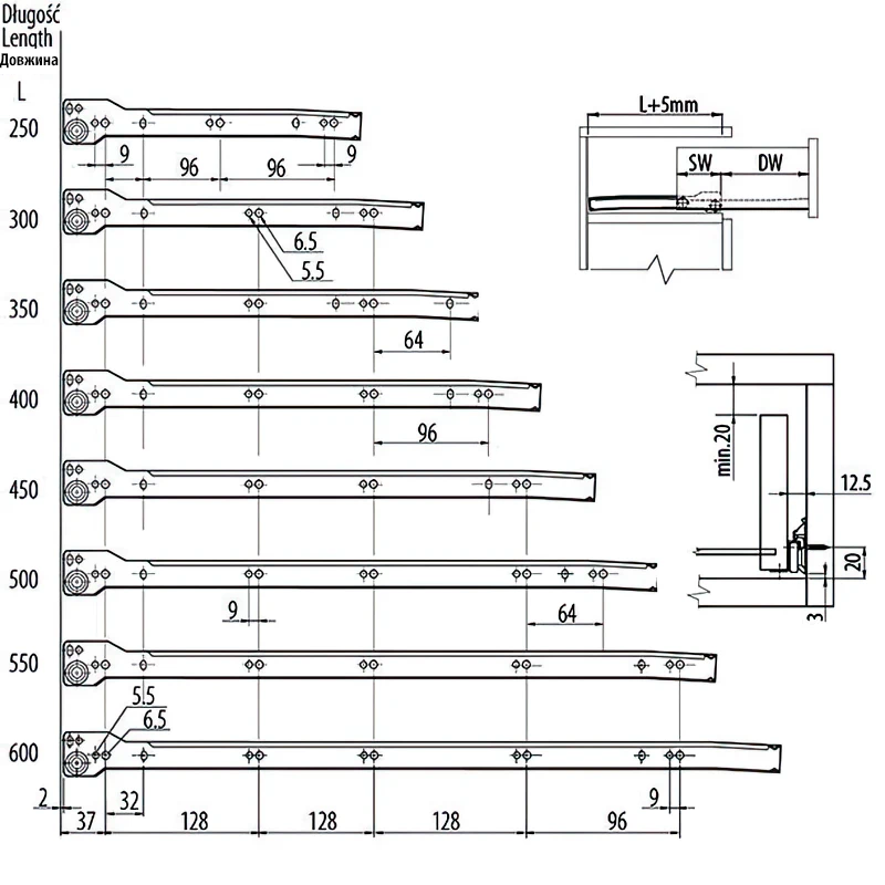 Роликові напрямні GTV PR-0B-500-10 довжиною 500 мм — це зручне рішення для висувних шухляд з великою глибиною. Вони забезпечують часткове висування, надійну стабільність та просту установку. Завдяки товщині сталі 0,9 мм і білому покриттю напрямні виглядають естетично й підходять до більшості меблевих конструкцій.