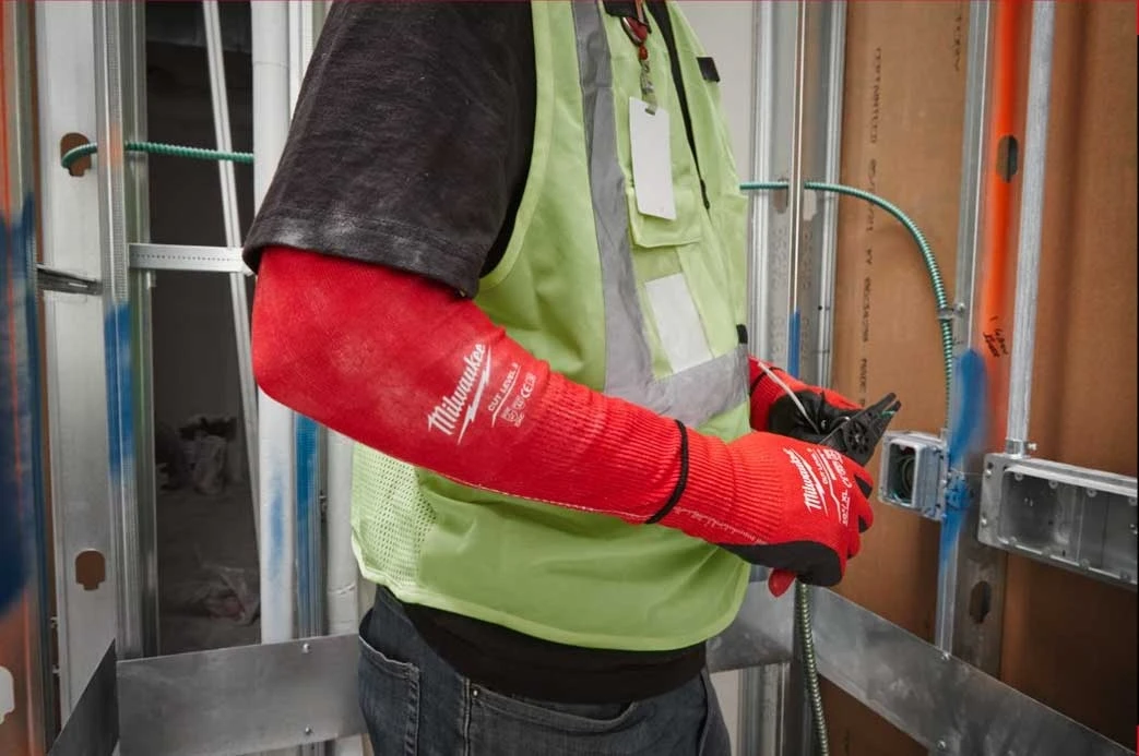 Нарукавники Milwaukee Tool виготовлені з високоеластичного нейлону та призначені для захисту рук під час монтажних і будівельних робіт. Довжина 45 см забезпечує перекриття передпліччя до ліктя. Матеріал щільно прилягає, не обмежуючи рухів. Підходять для використання разом із робочими рукавицями.