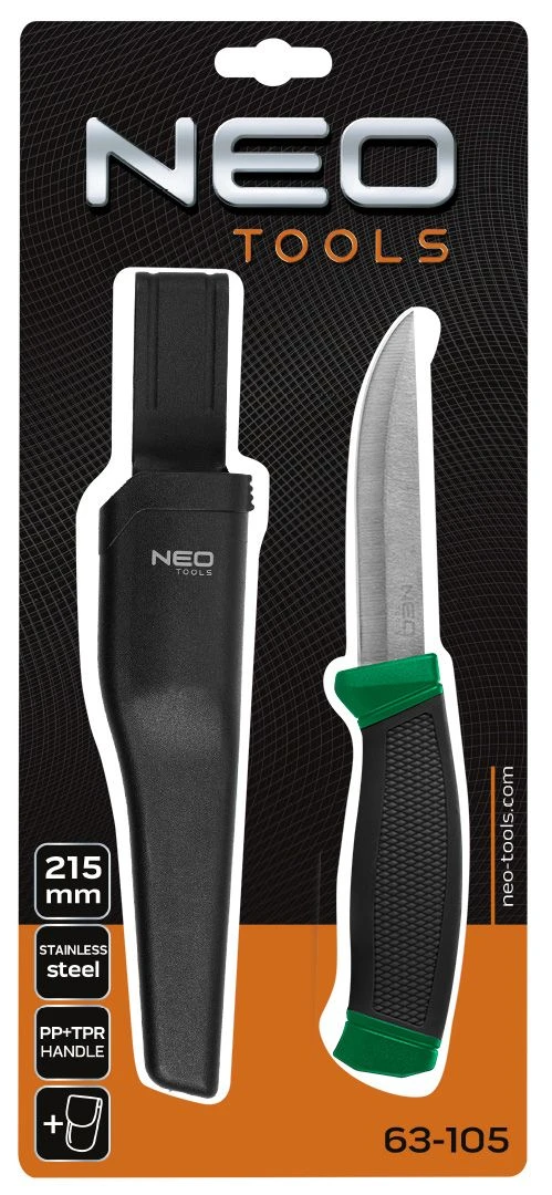 Ніж універсальний Neo Tools, 215мм, лезо 95мм, рукоятка двокомпонентна, чохол