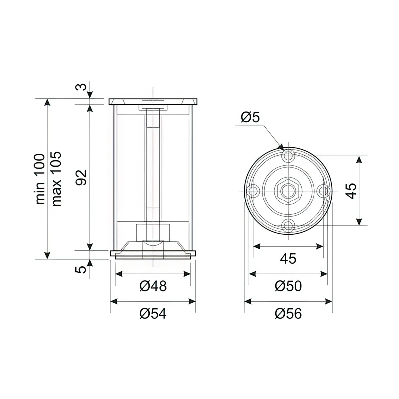 Ніжка меблева регульована DC NA 11C00 Н-100мм Алюміній