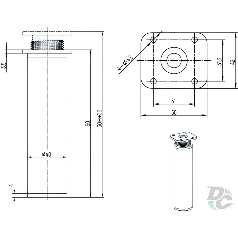 Ніжка меблева регульована DC RFA 052 Н-60мм Алюміній