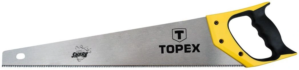 Пиляльне полотно Shark TOPEX (арт. 10A453) довжиною 560 мм із загартованої сталі. Тристороння заточка і загартування зубців значно знижує опір різанню і полегшує розпилювання деревини вздовж волокон. Ефективне зубцювання 7 зубів на дюйм покращує роботу. Ергономічна рукоятка з двох матеріалів дозволяє точно вести інструмент, а нековзне покриття гарантує, що він не вислизне з руки, тим самим забезпечуючи високий комфорт роботи. Бренд TOPEX орієнтований на ентузіастів "зроби сам".